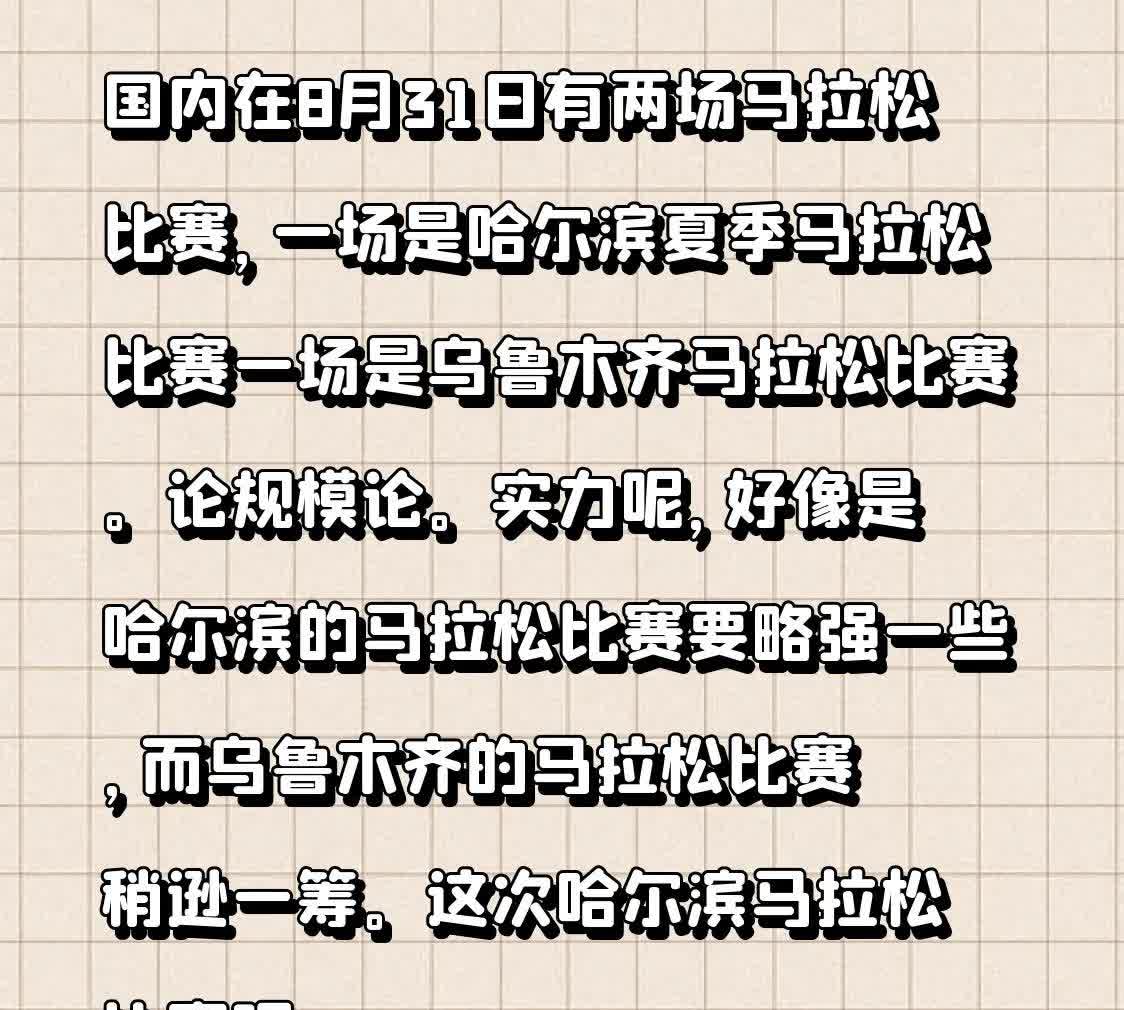 国内在8月31日举办了两场马拉松赛事,一场是哈尔滨国际马拉松,参赛人数达到破记录