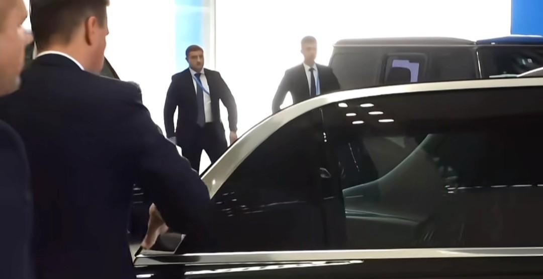 今天上午普京乘坐Aurus抵达峰会现场。近看俄制Aurus好长,配有迎宾照地灯。