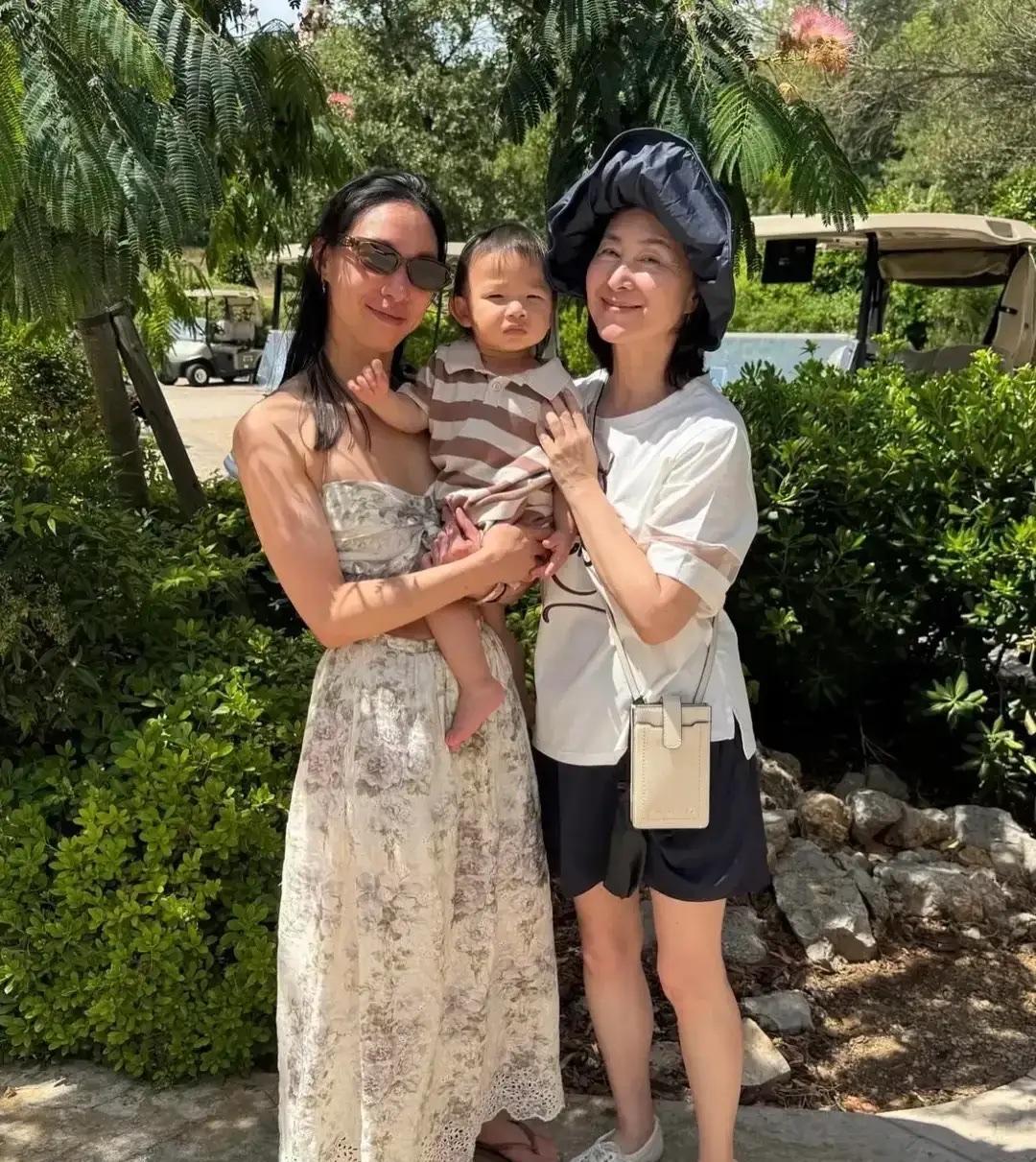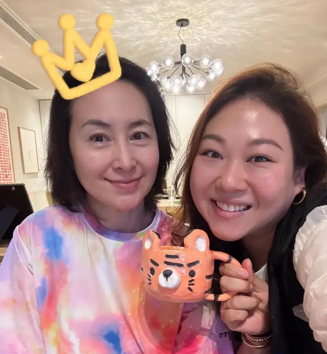 63岁何超琼好年轻,她穿了一件宽松彩虹T恤,和干女儿一起合影庆生! 何超琼虽然没