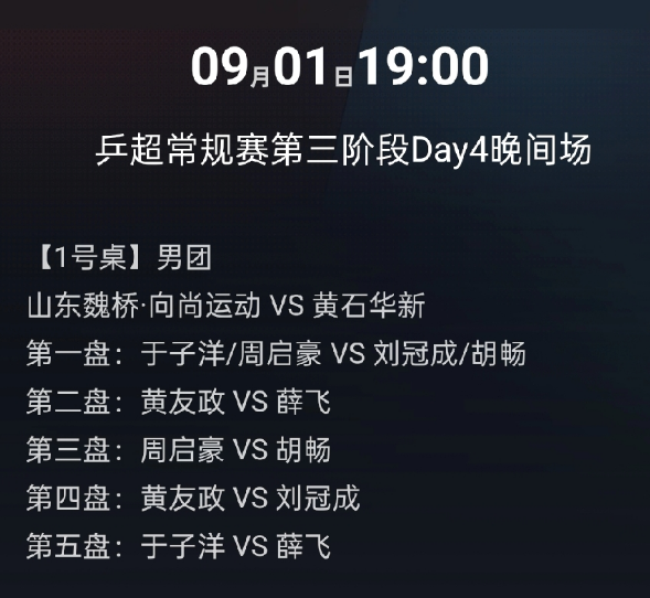 等了一天,等来了山东魏桥和黄石华新的主力不上场。 今晚王楚钦和林诗栋都休赛,