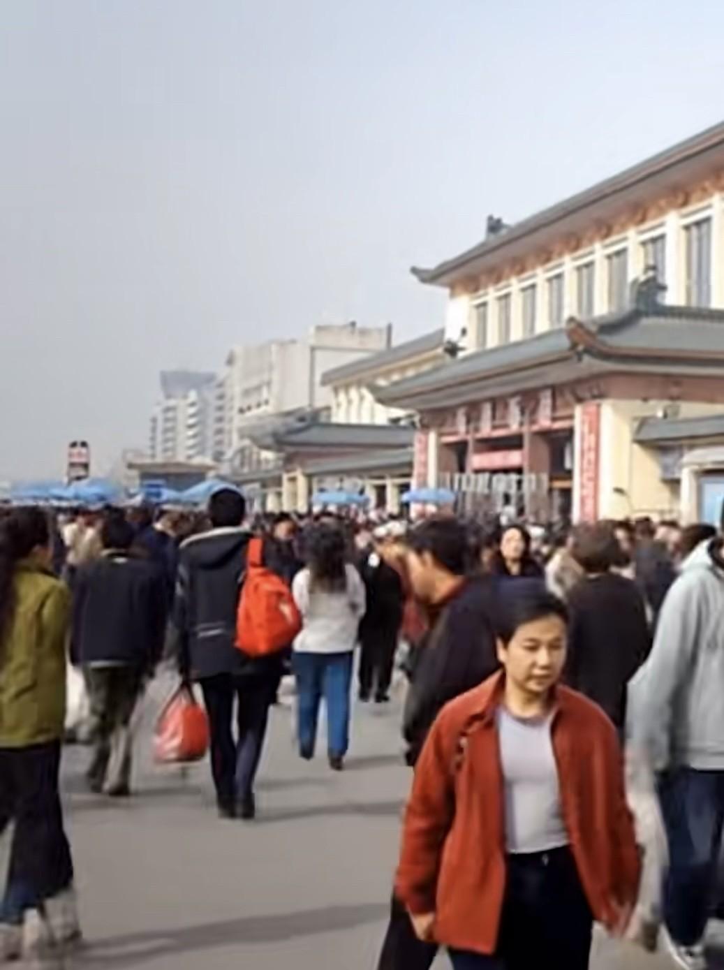 2006年11月的西安火车站 火车站广场上来来往往的人群熙熙攘攘 当时人们坐火车出行基本都是 背着包提着行李, 不像现在都是拉着行李箱出门。 #记录西安# #分享城市新鲜事#