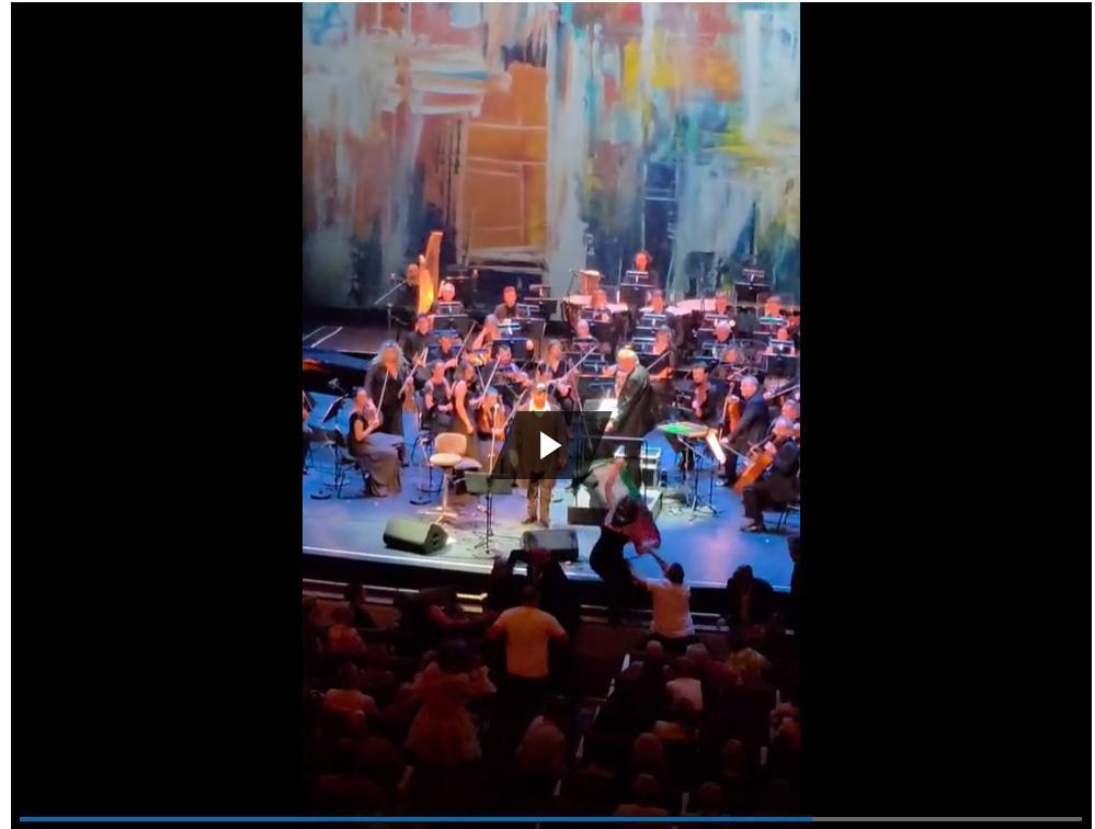 周日,以媒称,在波兰华沙:她把红色油漆泼向正在《我们的天父》祈祷的以色列歌手David D'Or。 周日,以媒报道称,以色列歌手David D'Or在波兰华沙的演唱会被一名支持巴勒斯坦的观众泼洒红色颜料而被迫中断。 以色列歌手David D'Or在波兰华沙的演唱会被一名支持巴勒斯坦的阿拉伯观众泼洒红色颜料而被迫中断。 她还对着舞台大喊:“解放巴勒斯坦。”场地方的保安强迫她离开。 红色油漆泼向正在《我们的天父》祈祷的以色列歌手David D'Or。 “在《我们的天父》祈祷的中途,当我祈祷来年和平与世界时,我闭上了眼睛,突然我感到一阵冷喷在脸上,”D’or 回忆道。“我睁开眼睛,看到我的衣服、脸、舞台和音乐家都染上了鲜红色,就像血一样。歌单看起来像是被血染污了。在‘Shema Yisrael’和‘Shmor Al HaOlam Yeled’等歌曲中,红色颜料的污渍让我回想起10月7日那可怕的画面。恐惧和哭泣的低语开始在震惊的观众中传播。我意识到我必须振作起来,鼓励他们。” D’or继续说道:“我一直唱歌,让大家闭上眼睛,为以色列人民祈祷。这并不容易。我的眼睛因痛苦和深深的悲伤而湿润。演出结束时,观众和我一起唱歌,我们离开时更加坚强。” 小提琴手吓坏了,他说“我们以为被酸液泼到了。多么糟糕的日子,愿上帝保佑。我祈祷能有更美好的日子,阿门。” 在这起事件发生后,警方立即将D’or送上了飞机,回到了以色列。 世界各地对以色列和犹太目标的破坏事件中,红色油漆的使用已经变得无处不在。被视为支持以色列的商业或政治人物也受到了红色油漆的袭击。 据《以色列时报》、美国彭博社等媒体报道,以色列驻荷兰大使馆当地时间12日遭到破坏,入口处被人涂上红漆,玻璃门被砸碎。 在以色列内部,最近元帅的住宅被涂上了红色油漆,还有反对继续战争的涂鸦。