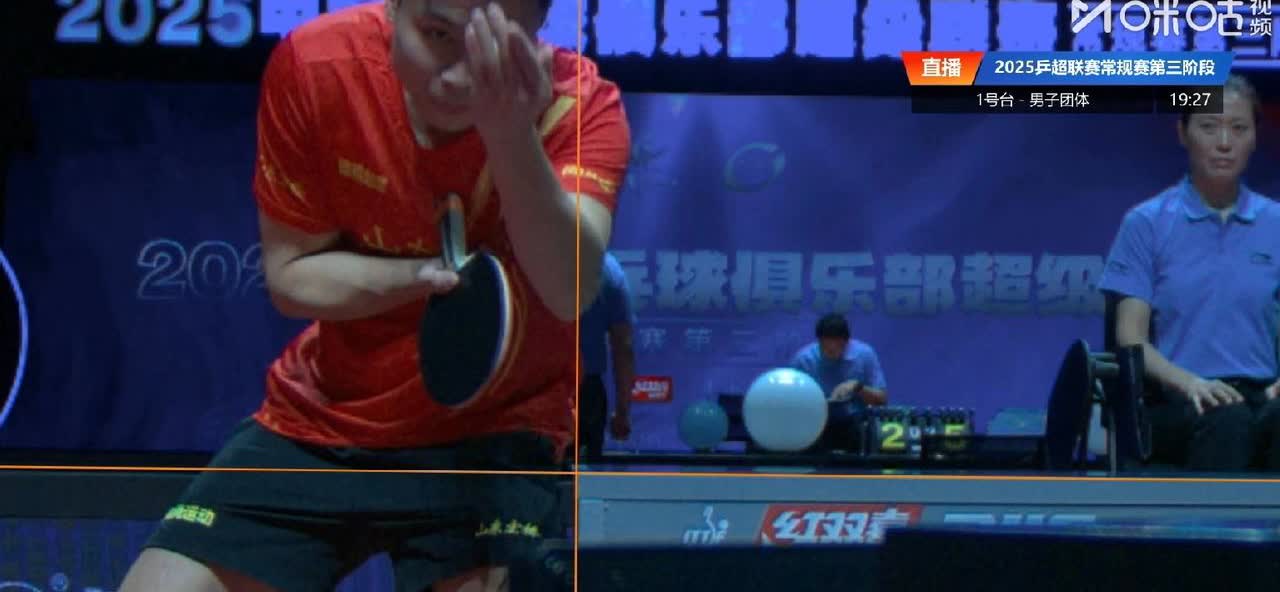 裁判认为周启豪发球违规,低于台面发球,周启豪挑战鹰眼 裁判第一次警告周启豪,周