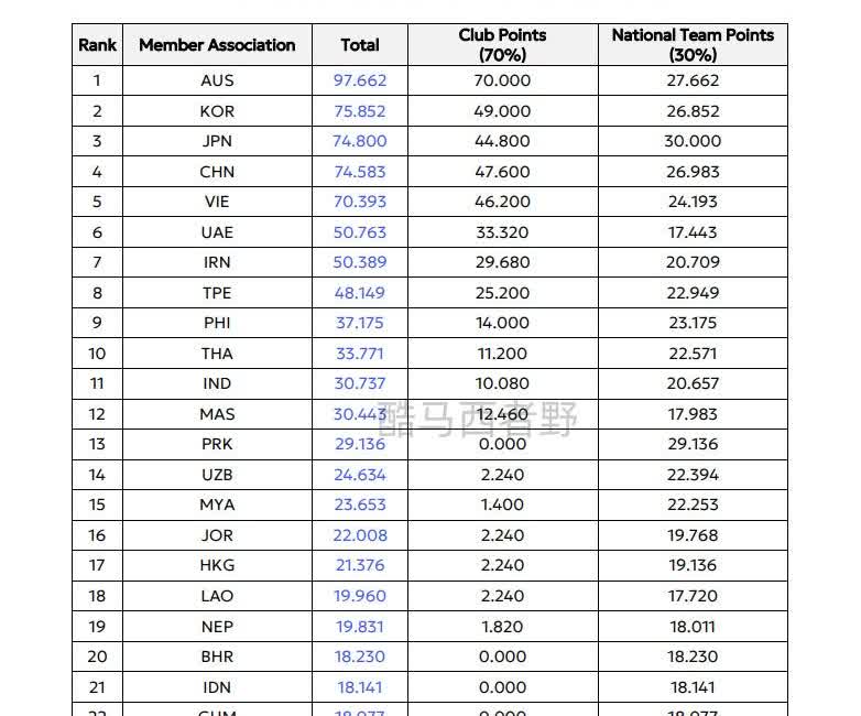 2025/26女足亚冠联赛预选赛昨天结束,参加女足亚冠联赛正赛的俱乐部有,澳大利亚的墨尔本城、韩国的水原、日本的东京日视美人、武汉车谷江大、胡志明市一区、伊朗巴姆卡通、朝鲜故乡、缅甸体育学院、新加坡狮城水手、乌兹别克斯坦纳萨夫、印度东孟加拉和菲律宾种马乐队,总共12支俱乐部队。 12支球队分为四档,第一档是澳大利亚的墨尔本城、韩国的水原、日本的东京日视美人,第二档是武汉车谷江大、胡志明市一区、伊朗巴姆卡通,第三档是朝鲜故乡、缅甸体育学院、新加坡狮城水手,第四档是乌兹别克斯坦纳萨夫、印度东孟加拉和菲律宾种马乐队,分档的原则是亚足联女足俱乐部比赛的排名由亚足联俱乐部积分的70%和国家队积分的30%,具体的积分如图。 分组抽签是9月11日,小组赛是11月份,八强赛是2026年3月22日至23日,四强赛是2026年5月21日,冠军争夺战是2026年5月24日。按照四档的划分,武汉女足将会与墨尔本城、水原和东京日视美人中的一支同组,与上一届女足亚冠一样,小组前两名和两个成绩最好的小组第三进入八强