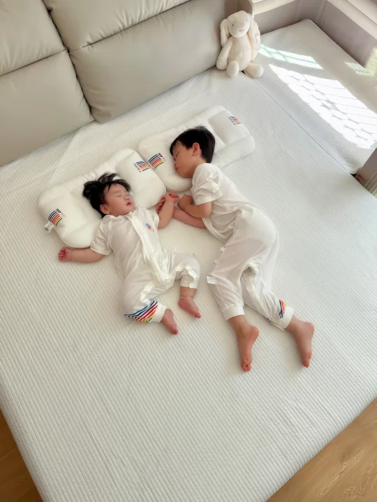 好不容易一个睡沉了,另一个落个枕不舒服哭闹