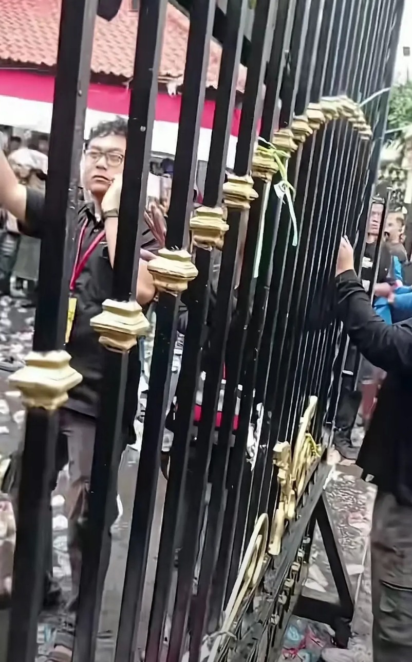 印尼总统匆忙回国,他第一时间赶到骚乱现场,登上防爆车,拿起话筒向聚集的人群喊话。 但现场人声鼎沸,十分嘈杂,一片混乱,几乎没有人在听他讲什么。 人群中,开始有人向总统投掷水杯、石块等杂物,一名工作人员急忙拿了盾牌来帮助总统,但是依然有水洒到了总统身上。不知是谁居然把一只拖鞋砸向了总统,幸亏工作人员机灵,用盾牌挡了下来。 另一名警察见状,急忙也拿着盾牌爬上车顶,帮助总统抵挡,才没有让总统第砸个满身。 骚乱的人群没有丝毫散去的意思,他们吵嚷着,隔着铁门与工作人员对峙,现场没有因为总统的到来而平静,反而更加群情激奋。