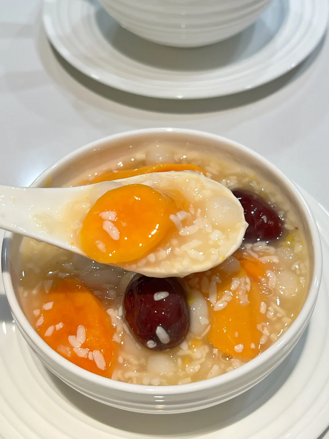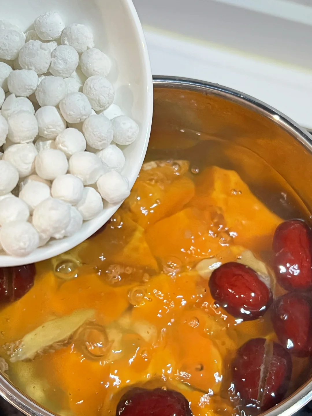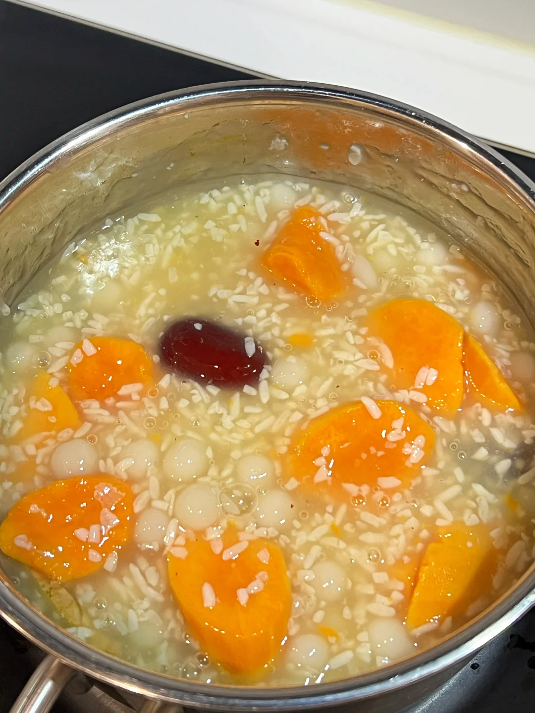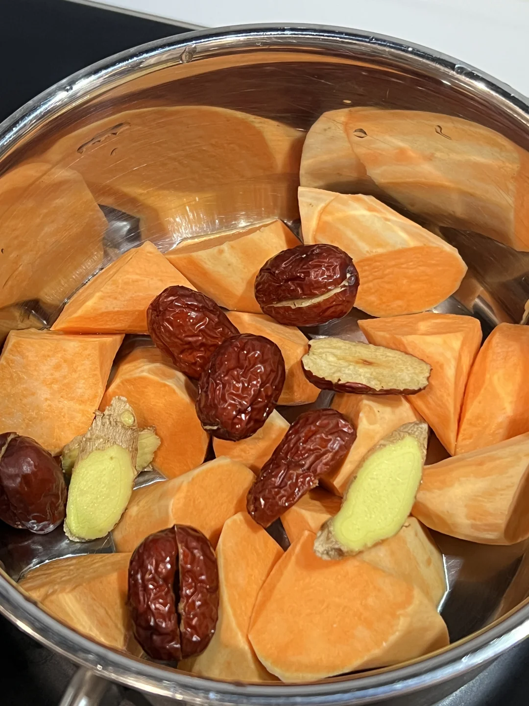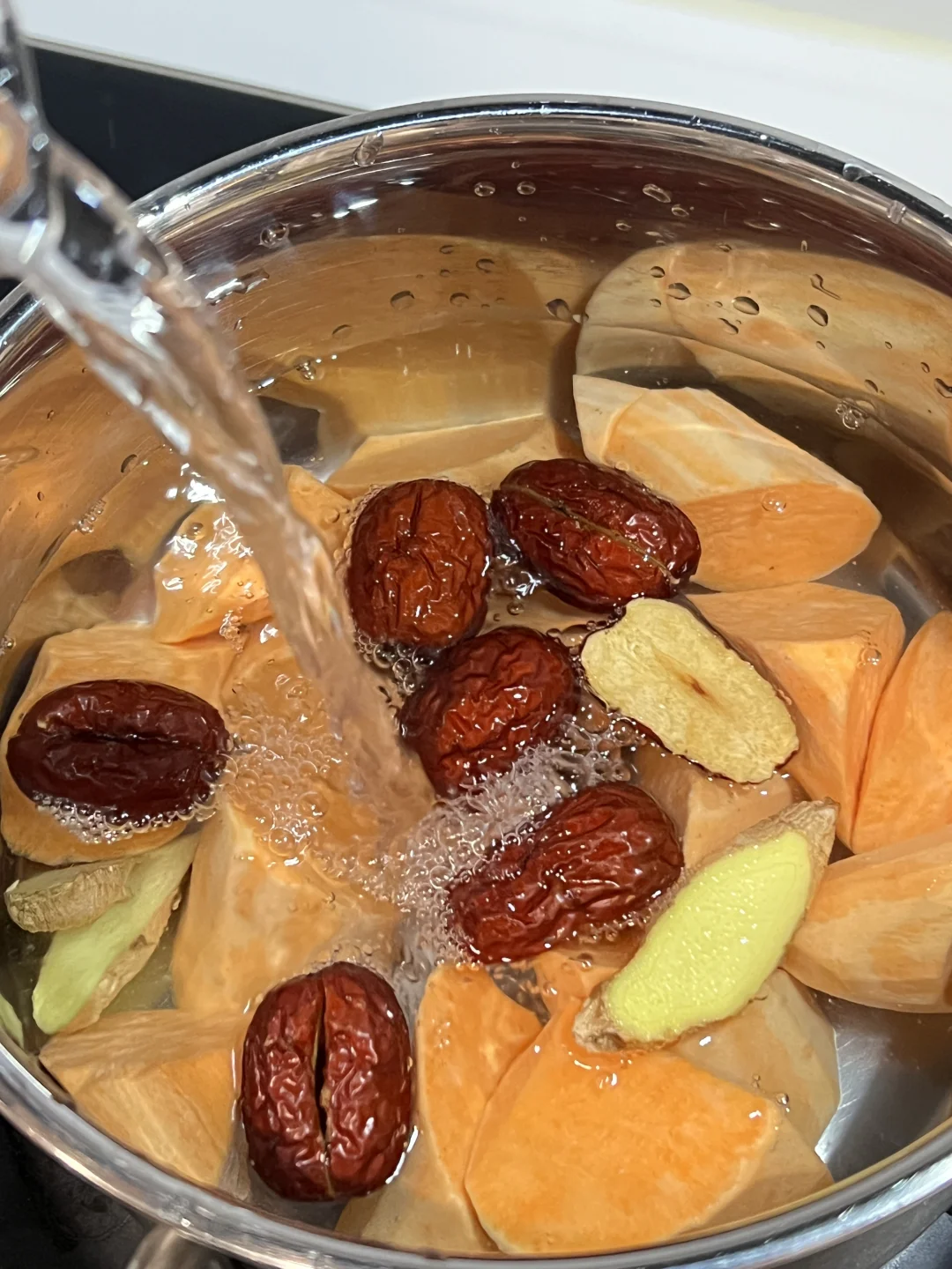 连续喝了一周,来姨妈肚子真的不痛了~番薯富含铁和膳食纤维,红枣和酒酿活血暖胃,老姜驱寒升阳。做法超简单,好气色可以吃出来! 🧑🍳食材: 1️⃣番薯200g 2️⃣小圆子100g 3️⃣酒酿50g 4️⃣去核红枣6个 5️⃣老姜3片 🥣做法: 1️⃣番薯去皮切块,与红枣,姜片一起放入锅中,加适量清水,大火烧开后,小火煮15分钟。 2️⃣加入小圆子,煮至浮起加入水淀粉勾芡即可。 ❗️小贴士: 1️⃣红枣,酒酿已经有甜味,可以不用另外加糖。 2️⃣红枣去核不会燥热。