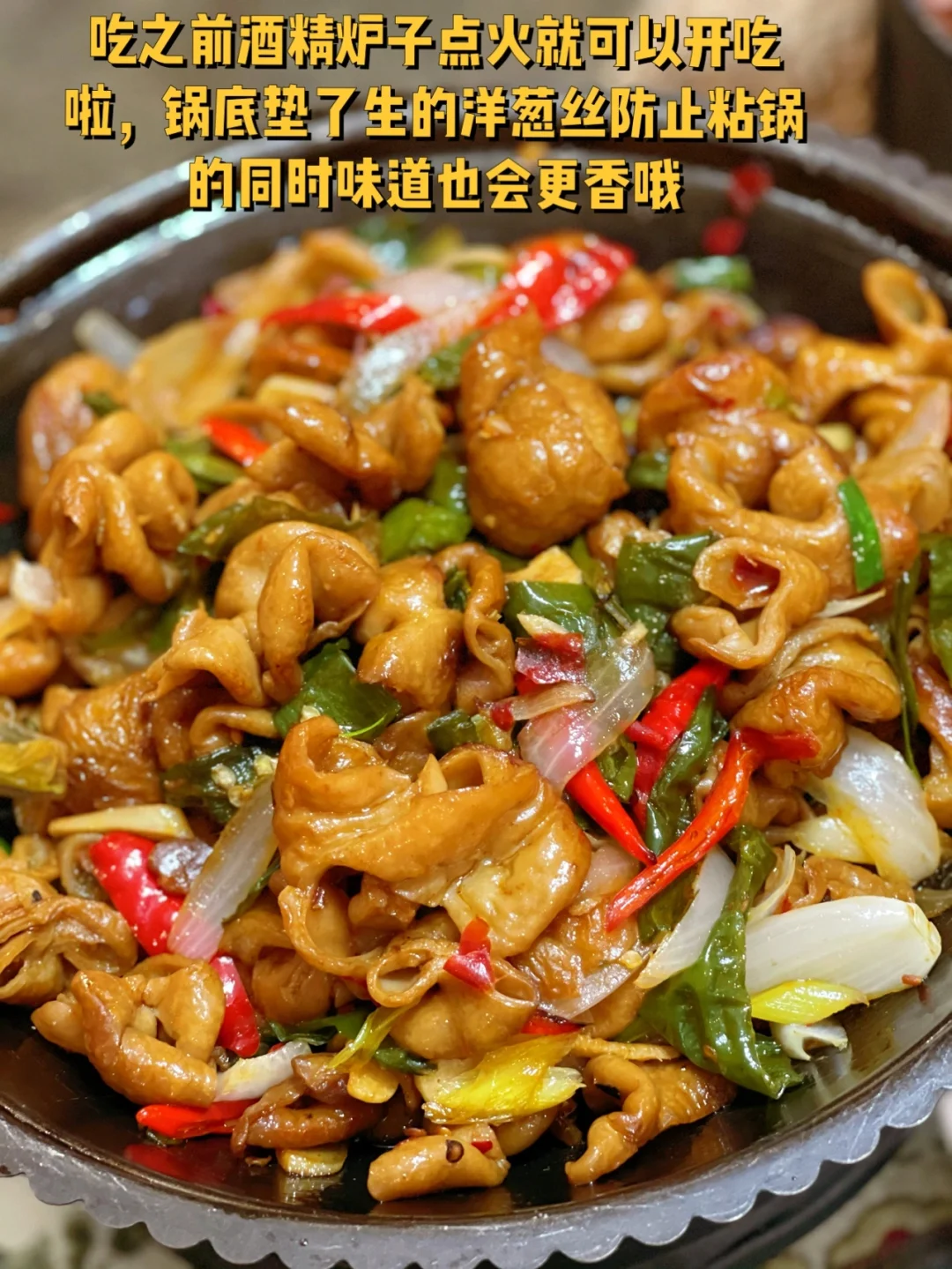 13. 吃之前酒精炉子点火就可以开吃啦,锅底垫了生的洋葱丝防止粘锅的同时味道也会更香哦