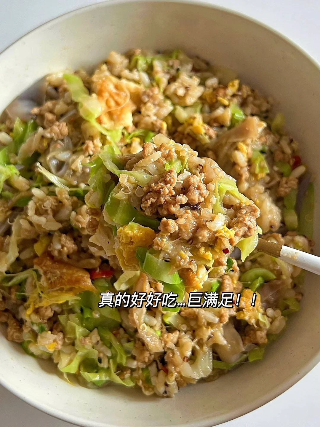 今天吃的是肉末茄子➕包菜丝拌饭,做起来很简单!
