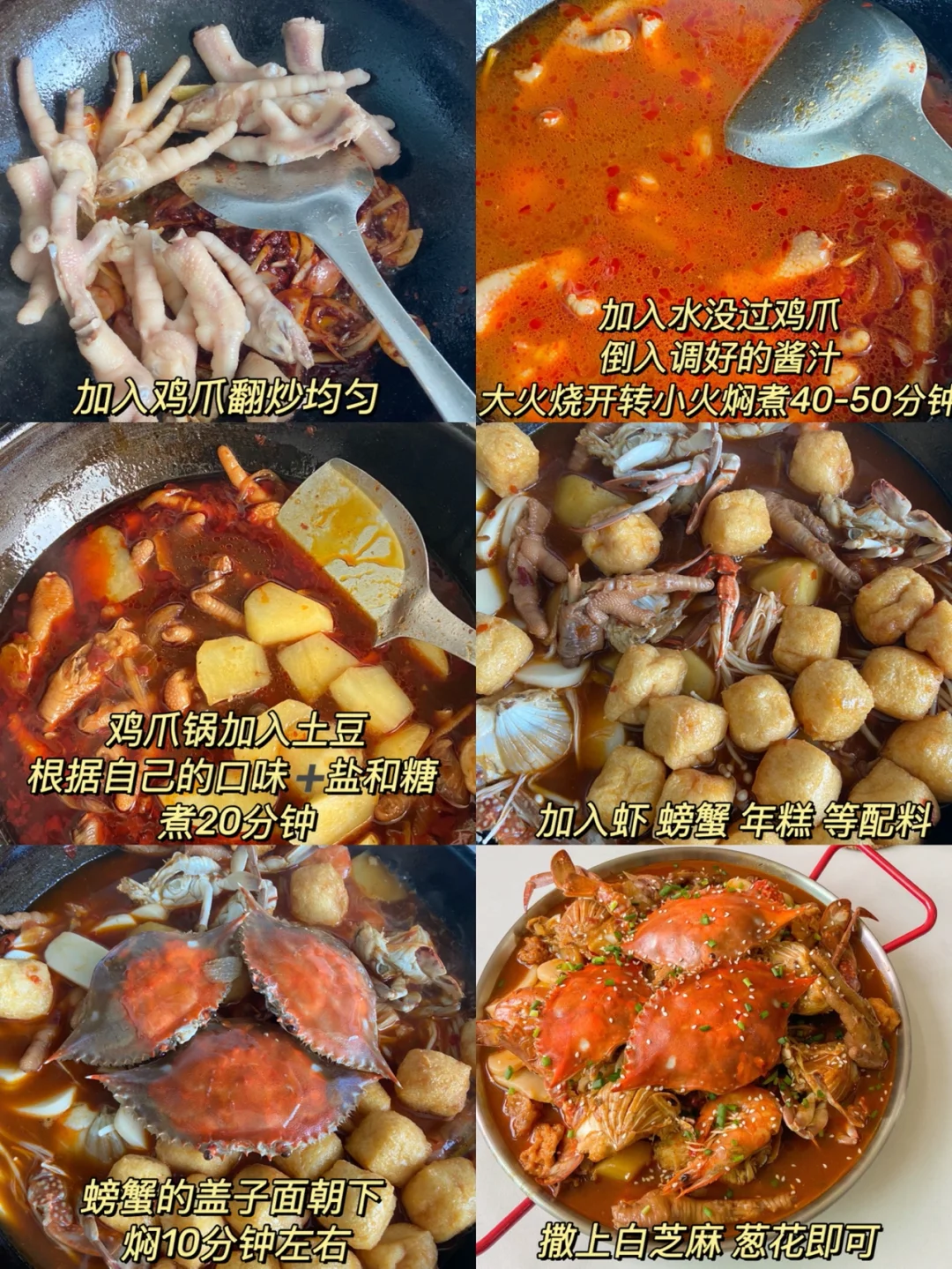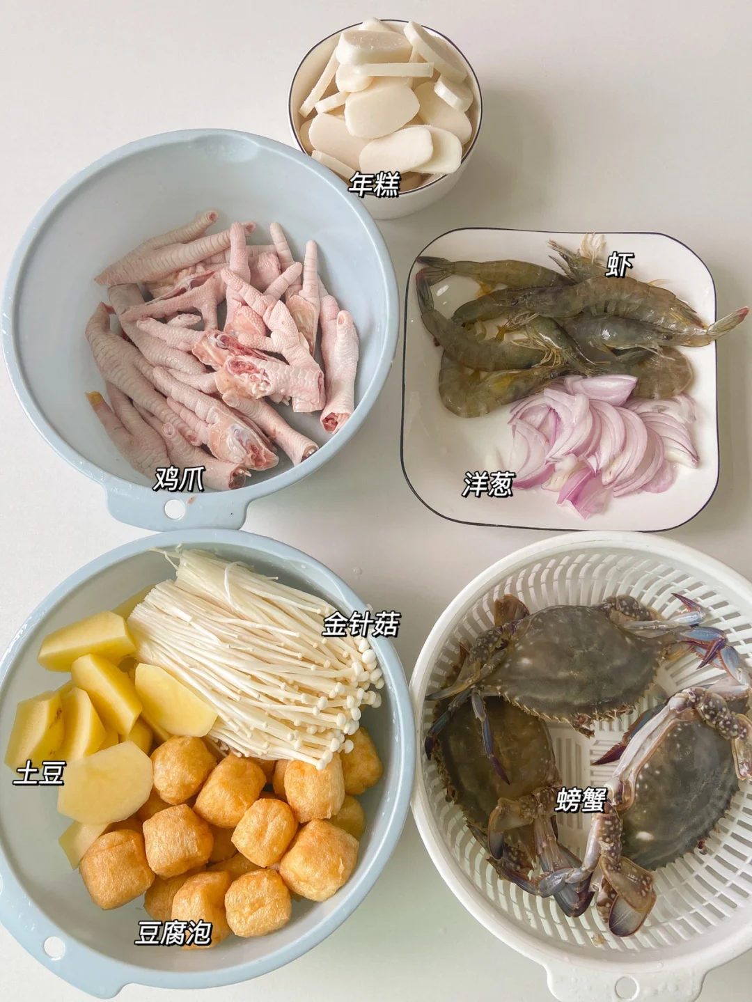 梭子蟹3只 虾半斤 鸡爪半斤 土豆 洋葱 年糕 葱