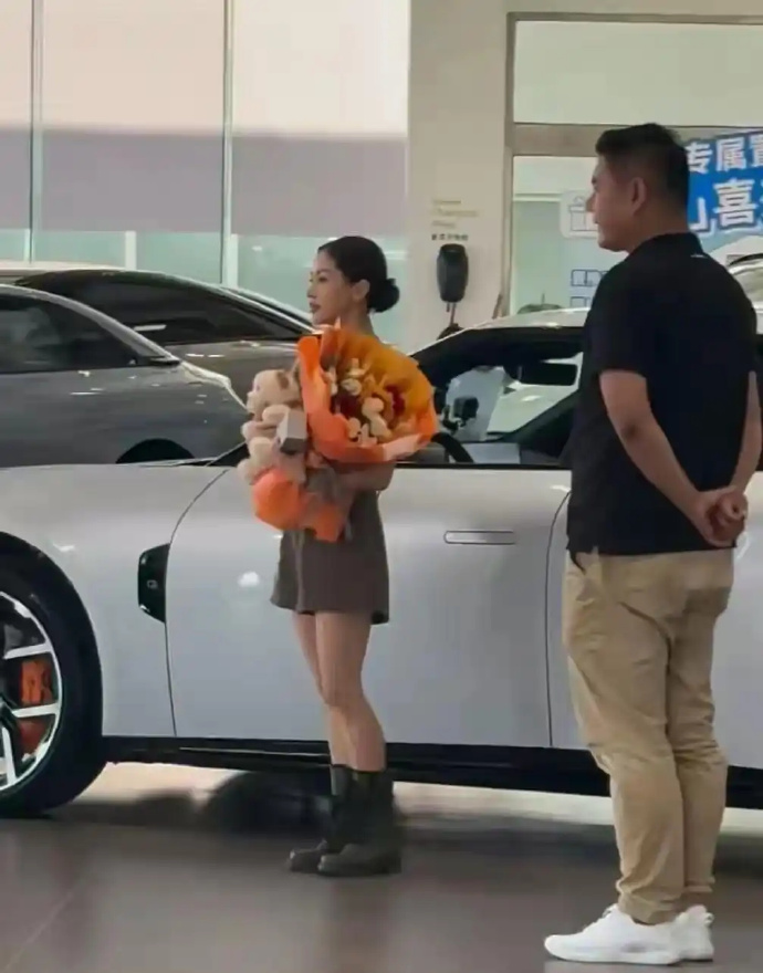 女星王子文现身北京买汽车,一条棕色短裤气质高冷酷帅!