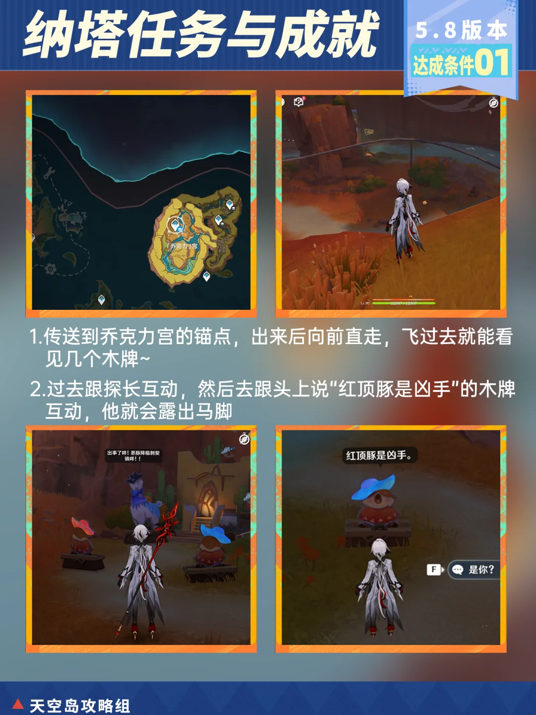 与探长互动,再与头上说“红顶豚是凶手”的木牌互动,即可开启任务[哇R]