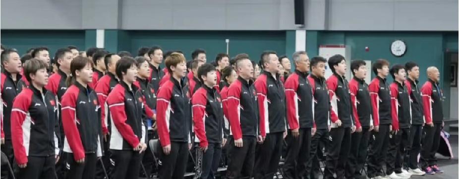 今天国乒全体成员的合照刷屏啦!大家整齐排列,应该是在集体观看93阅兵呢。 照片里,队员们神情专注,嘴巴似乎还在跟着唱,那场面真是太有感染力了。马琳、秦志戬、王皓、李隼四位教练站在中间,女队主教练马琳旁边是孙颖莎,男队主教练王皓身旁是王楚钦,这站位妥妥的C位待遇,足见他们在国乒的重要地位。 国乒一直都是我们的骄傲,看到他们齐聚一堂,共同见证这一庄严时刻,真的让人倍感自豪。期待他们在未来的赛场上也能像今天一样,团结一心,再创佳绩! #国乒# #93阅兵#