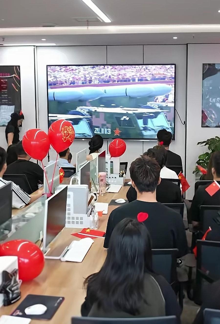 小贝饿了,带领员工一起看阅兵式,粉丝评论:这是正经单位! 真没想到,小贝饿了,竟然有那么多员工,我感觉得有百十来号人,人才济济,有退伍军人,有党员,有留学生! 小贝,小小的身躯,大大的力量!穿着素雅的旗袍,梳着中国风的辫子,抱着一岁的儿子麦麦一起来办公室和员工看阅兵仪式! 麦麦着装也很有讲究,红色的体恤,T恤上写着:我爱中国! 他们很早来到公司,没想到员工来的更早!办公室里挂满了印有五角星的红色气球! 大家端正的坐在办公室里,迎接那历史性时刻的到来! 升国旗,唱国歌! 所有员工起立! 当巡航导弹方队出来的那一刹那,全体员工欢呼一片!我们都为祖国感到 自豪! 麦麦竟然也没有乱动,听的格外认真,当他伸出小胳膊的那一刹那,他是不是想抓住电视机里飞起来的气球? 铭记历史,捍卫和平,我是中国人,我骄傲!