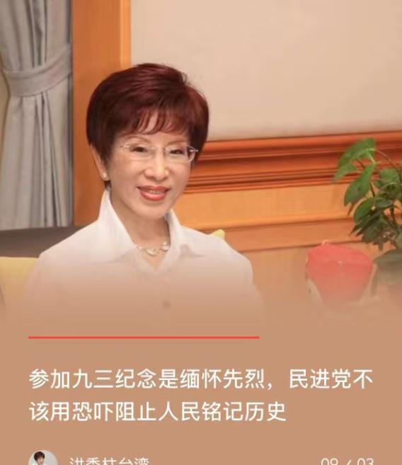 看完您发表的文章,我深表感动,的确,抗战记忆是民族的集体根脉,不应沦为政治斗争的筹码。 铭记胜利,不是沉溺于仇恨,而是提醒我们今日的和平来之不易。 真正的勇气在于直面历史,而不是所谓的刻意回避,真正的担当在于传承先烈精神,而不是所谓的掩盖牺牲价值。 而您则将真正的勇气和担当兼顾了下来,政坛铁娘子的称号非您莫属。#洪秀柱独家发文斥责民进党恐吓#