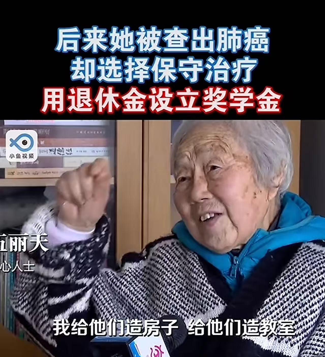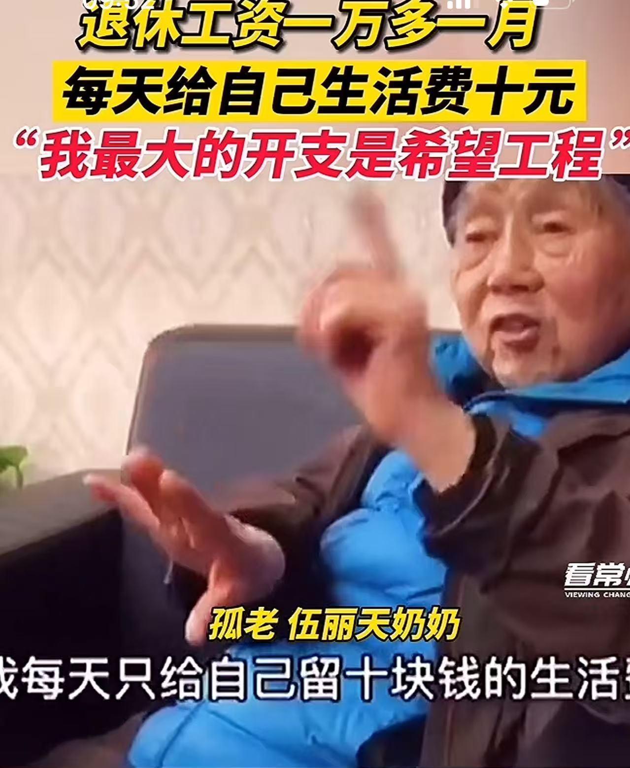 上海有个老奶奶,有一套价值 500万的房子,每个月还有1万多的退休金。可她却每天啃馒头喝稀饭,连一块5块钱的饼都不舍得买!大家都不理解,直到有一次老奶奶迷路,被民警送回家,看到她家里的墙壁,才揭开了她背后藏着的秘密! 事发当天,一位头发花白、身形有些佝偻的老奶奶,在繁华的街道上慢慢走着,眼神里满是迷茫。她穿着洗得有些发白的旧外套,手里紧紧攥着一个布袋子,袋子里似乎装着什么重要的东西! 没一会儿,她就彻底迷失了方向,站在原地不知所措。巡逻的民警很快发现了她,看她状态不对,便上前询问。老奶奶支支吾吾,说不清楚自己家在哪里,只是反复念叨着一些模糊的地址。民警没办法,只好先把她送回家。 到了老奶奶家,打开门,眼前的景象让民警愣住了。这房子不大,陈设极其简单,甚至可以用简陋来形容。最引人注目的是墙壁,上面贴满了各种各样的照片和信件。 照片里,是一群群穿着校服、笑得灿烂的孩子,背景是崭新的教学楼;信件上,歪歪扭扭的字迹写满了 “谢谢奶奶”“奶奶我会好好学习” 之类的话语。 民警正疑惑着,老奶奶慢慢走到墙边,用布满皱纹的手,轻轻抚摸着那些照片,眼神里满是温柔。这时候,大家才知道,这位看起来对自己无比 “吝啬” 的老奶奶,背后有着怎样的故事。 老奶奶叫伍丽天,退休前是上海评弹团的教师。她在上海有一套价值 500 万的房子,每个月还有 1 万多的退休金。按说,她的生活应该过得很滋润,但她却对自己抠到了极点。 每天的早饭,就是馒头就着稀饭,连一块 5 块钱的饼都舍不得买。出门坐公交,为了省那两块钱,宁愿多走很多路。身上的衣服,也是穿了很多年,破了就补一补,从没想过买新的。周围的邻居们都不理解,觉得她太亏待自己了,背地里没少议论。 可谁也不知道,伍丽天把自己大部分的钱,都用在了更有意义的地方。她卖掉了上海那套价值不菲的房子,拿着这笔钱,跑到外地,建起了希望小学。那一张张照片里的教学楼,就是她用卖房款换来的。看着孩子们能在明亮的教室里读书,她比自己吃了山珍海味还开心。 后来,伍丽天被查出了肺癌。这对于任何人来说,都是沉重的打击。可她却做出了一个让所有人都震惊的决定,她竟然选择选择保守治疗! 因为她想把更多的钱省下来,用自己的退休金设立奖学金,奖励那些在希望小学里努力学习的孩子。她觉得,孩子们的未来比自己的治疗更重要。 她每个月 1 万多的退休金,给自己每天只留 10 块钱的生活费,剩下的几乎全都投入到了希望工程里。她总说:“我最大的开支就是希望工程。” 她的生活里,没有昂贵的保健品,没有华丽的服饰,有的只是对孩子们的牵挂和对教育的执着。 这个消息传出去后,在网上引起了轩然大波。网友们纷纷留言:“老奶奶太伟大了,自己过得这么朴素,却把爱都给了孩子们。这才是真正的善良,用自己的力量去改变别人的人生。希望奶奶能健健康康的,她的善举一定会有好报。” 还有人说:“我们平时抱怨生活这不好那不好,看看奶奶,才知道什么是真正的精神富足。” 伍丽天的故事,温暖了很多人的心。她用自己的行动,诠释了什么是无私的爱,什么是对教育最纯粹的坚守。在这个物质丰富的时代,她的 “吝啬” 与 “慷慨” 形成了鲜明的对比,也让更多的人开始思考,人生的价值究竟在哪里。 或许,像伍丽天这样,用自己的力量去照亮别人的路,才是最有意义的人生吧。 对此你怎么看?欢迎大家在评论区留言讨论。 信源:中国青年报