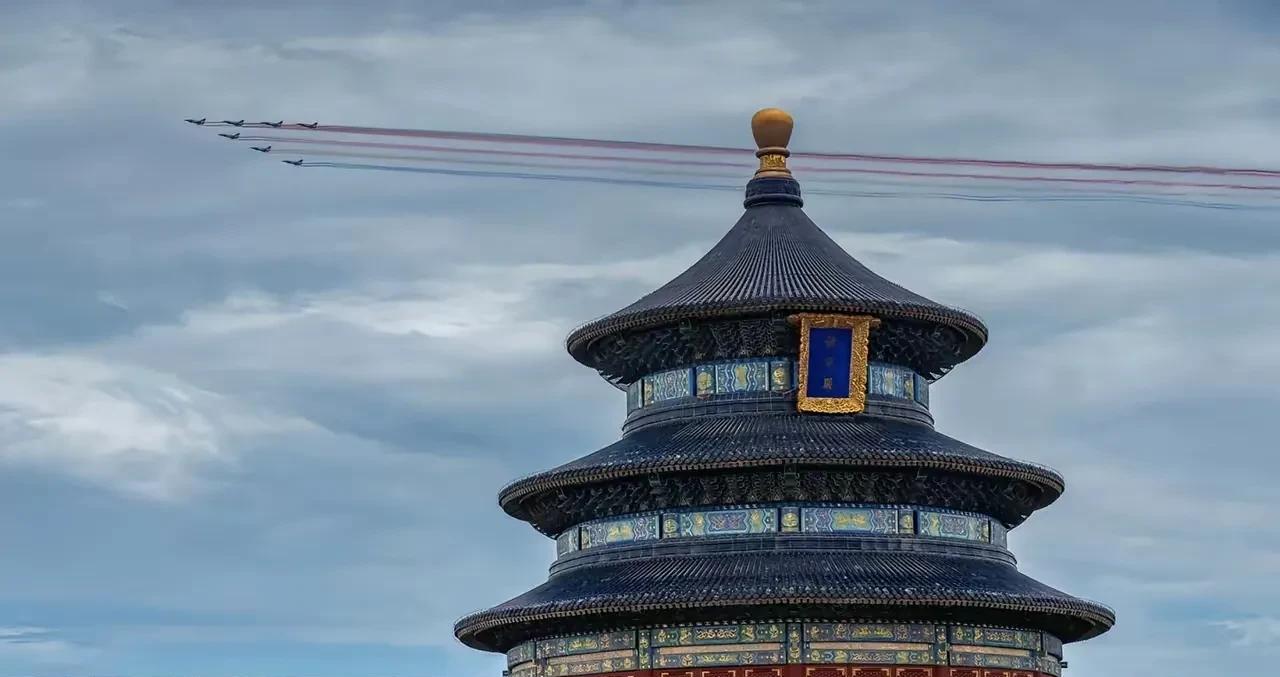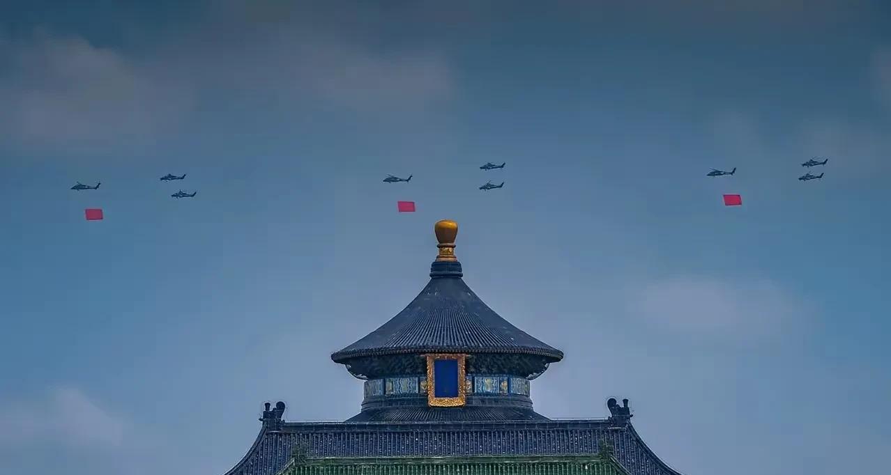 飞跃历史长空,跨越时空的对话,一个古老的民族历经沧桑,经历战争苦难,依旧屹立在东方,巍巍古建筑见证了历史的变迁,中式审美始终令人惊艳!这次阅兵的摄影获得了很多观众的肯定,确实功力了得!
