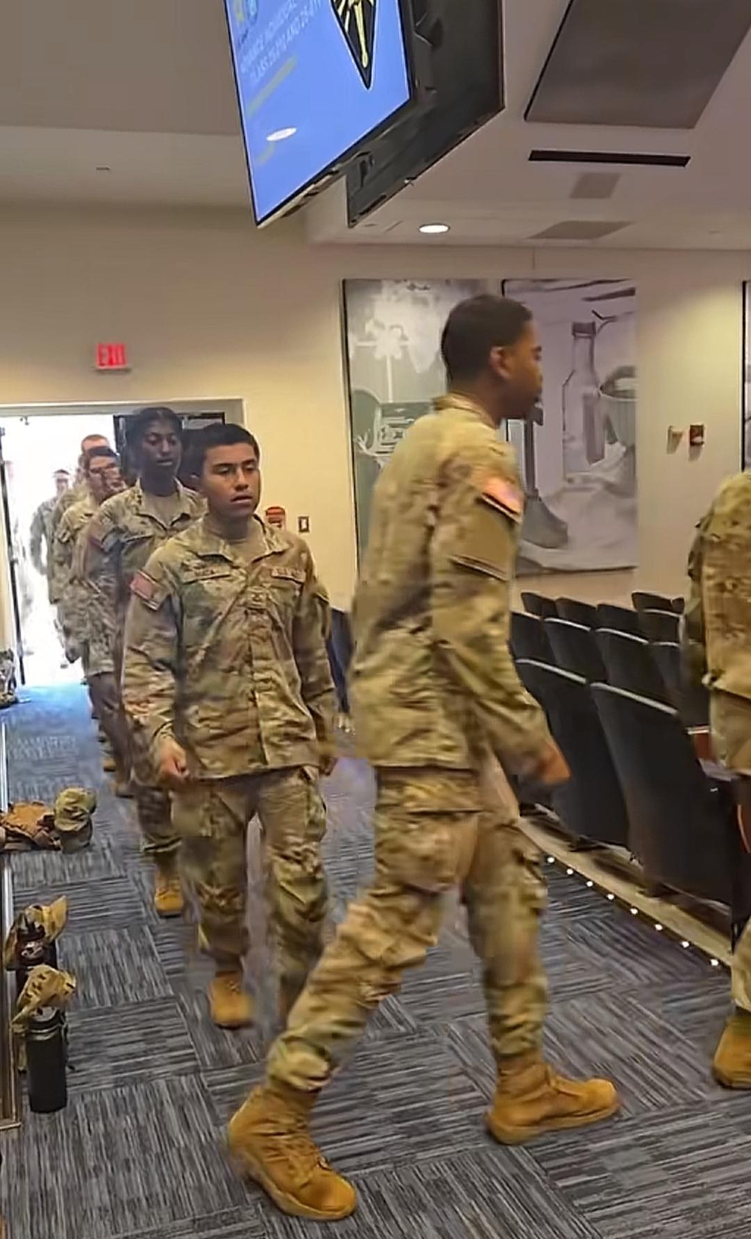 感觉在社会上找不到出路的,全入军营了,美军现在好比收容所,承接着高的高矮的矮胖的胖瘦的瘦蠢的蠢笨的笨,看上去美军的入伍标准现在定的很低,你只要愿来又不十分傻,我就要你(美国是募兵制,就是雇佣兵制)。哈哈哈。 国人看到这样的照片视频,经常会不由自主地发问,这就是世界最强之战无不胜的美军吗?怎么看怎么像一群乌合之众。照片上这群人,确实不怎么精明,我猜应该是干后勤的。 精干的应该都入精英部队了,比如陆军的特种兵,空军的飞行员,海军的舰士,信息战技师。 有人拿美国的阅兵跟中国的阅兵比,说美国的阅兵根本没法看。确实,如果以阅兵水平来决胜负,美军连三流部队都算不上,排名的话,得排到世界100名开外。 特朗普拿手帕擦了擦额上的汗说,幸亏世界不是以阅兵定输赢。