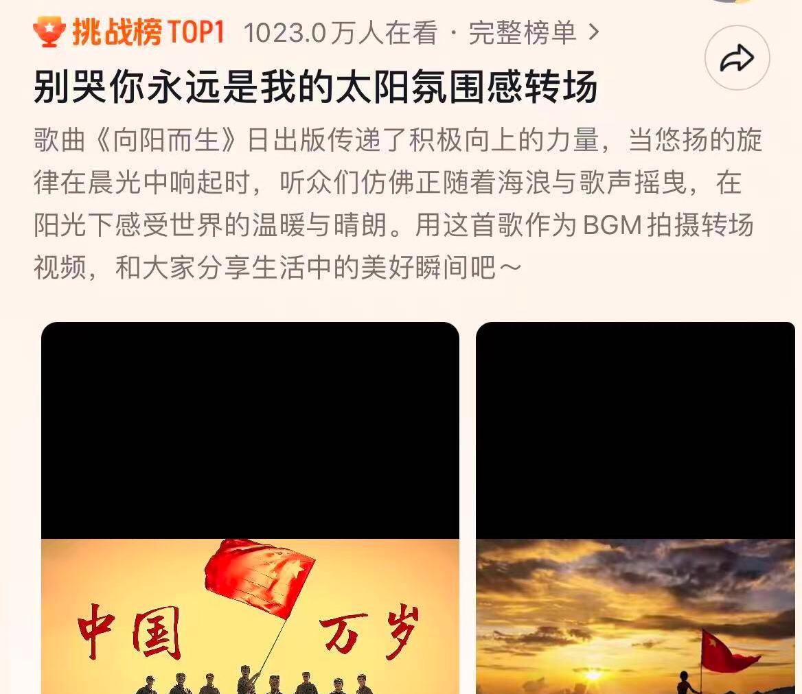这首歌再次燃爆了!华晨宇的《向阳而生》日出版,9月3号被网友大赞为93大阅兵热度第一的BGM! 9月3号《向阳而生》同时成为各大网络平台热搜音乐的第一名! 《向阳而生》这首歌是华晨宇专门为日出演唱会而写!激励人们积极向上,心向阳光。 2024年五四青年节这天, 华晨宇成功举办全球首个大型日出演唱会,在山东烟台的海边,迎着第一缕朝阳出现在海平面,13万人聚集在一起共同唱响! 《向阳而生》日出版的特定歌词真的能让所有人的血脉觉醒! “我们曾默默承受,破碎的山,呜咽的黑。就在这长夜之后,凝结一座新宇宙!” “那太阳闪耀依旧,照亮胚胎,照亮墓碑。随无数生命漂流,向阳而生!” “我们彼此簇拥(希望),你看荒芜之地那颗(太阳),无论世界种下绝望(希望),别哭,你永远是我的(太阳)!” 除了这首歌,华晨宇曾在22年还改编过自己专辑里一首的《for forever》,做成磅礴大气的交响乐版本,也被央视经常拿来适配祖国的大好河山,和阅兵的BGM! 很欣赏华晨宇的一句金句:青年人就应该无所畏惧,努力的向下扎根,向上生长,向阳而生! 只要拥有强大的信念,终将冲破黑暗,向阳而生! 最后,请为强大的祖国送上一句正能量的祝福!