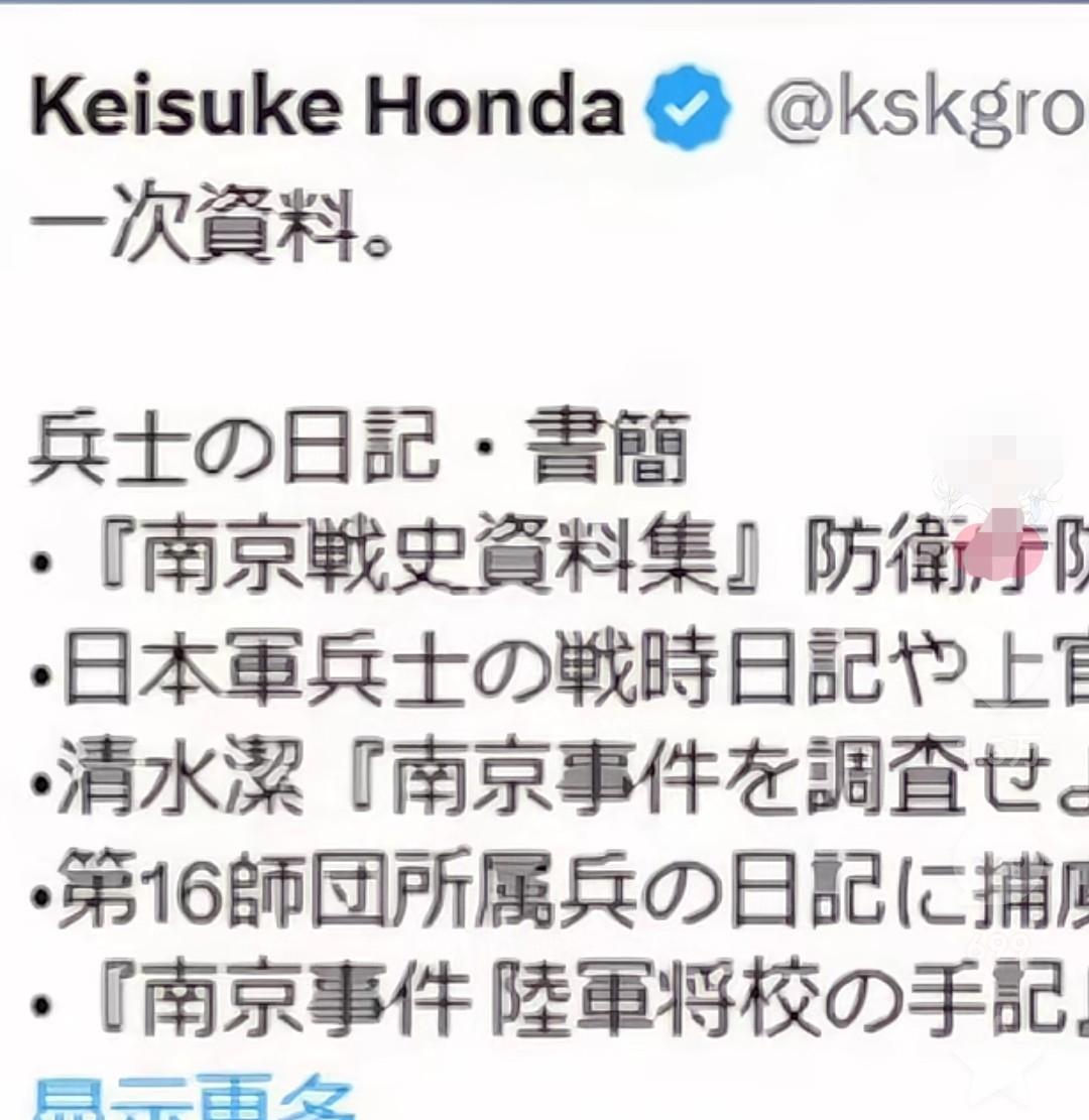 日本足球明星本田圭佑发文承认南京大屠杀。 本田圭佑原文的大致意思是,他原本不相信