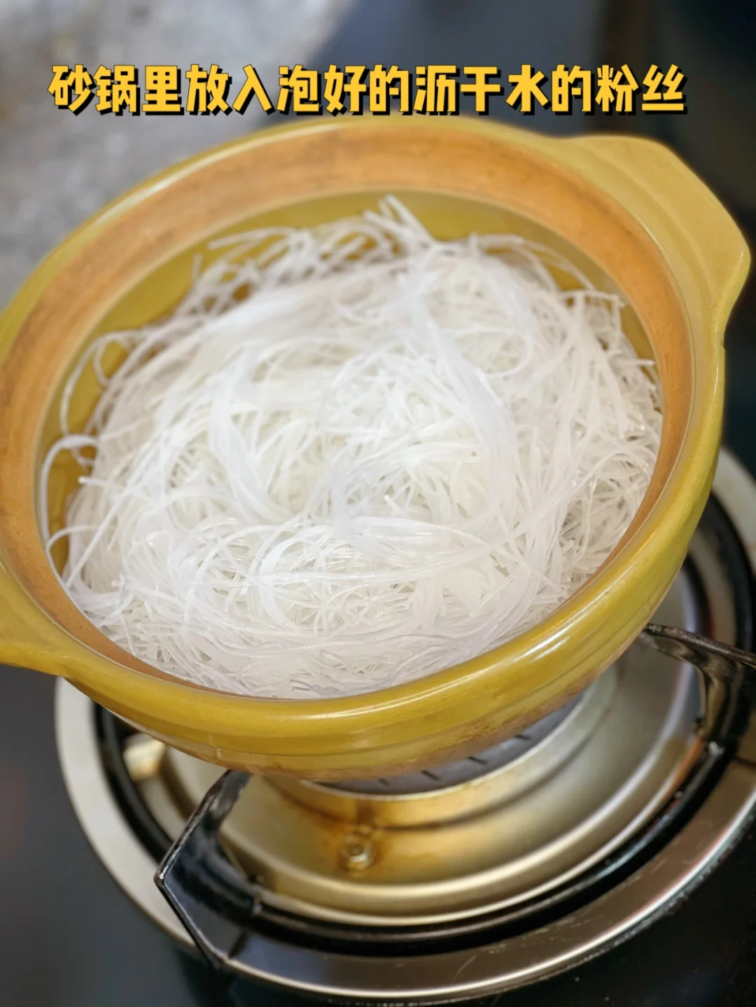 9. 砂锅里放入泡好的沥干水的粉丝