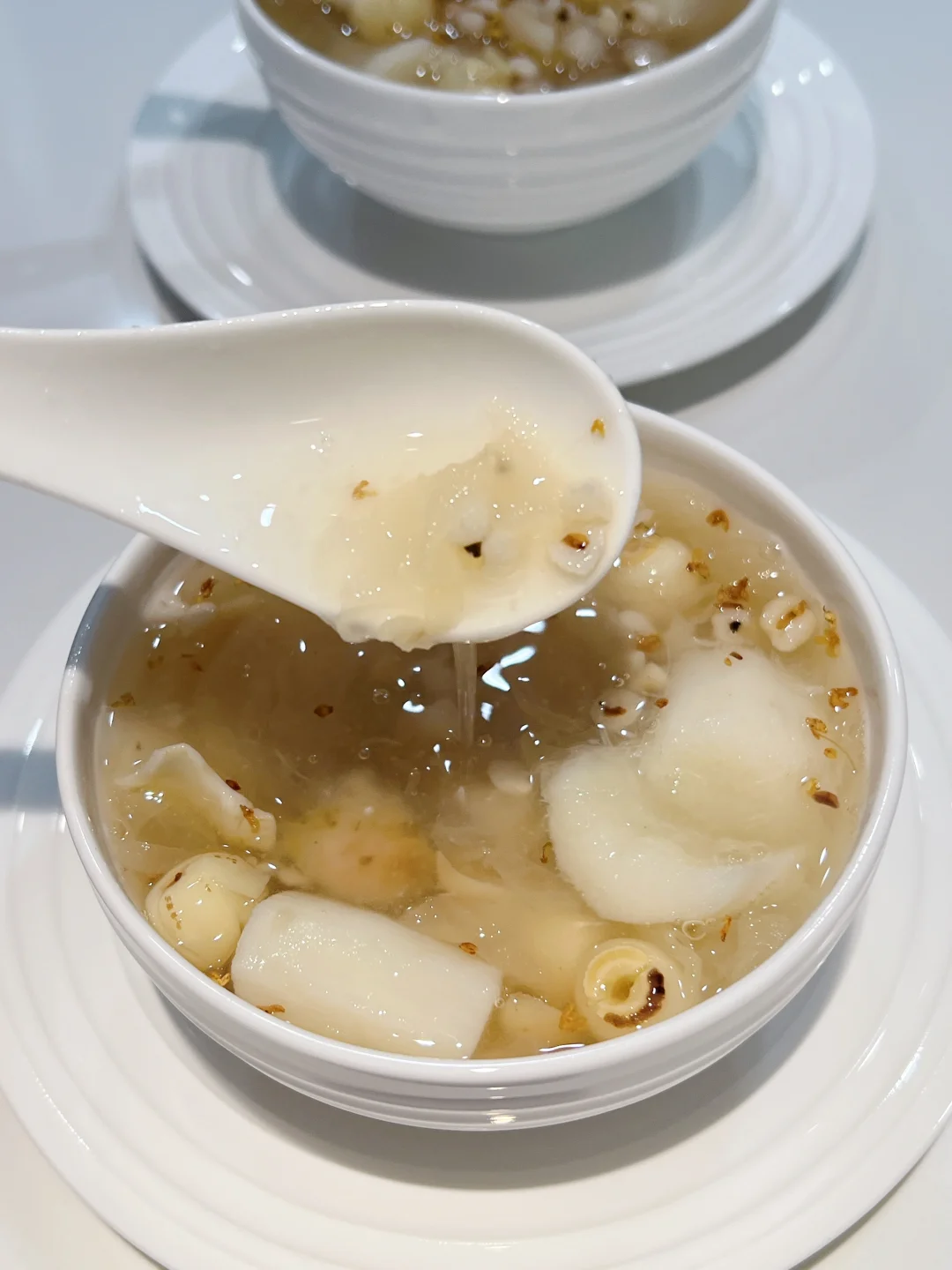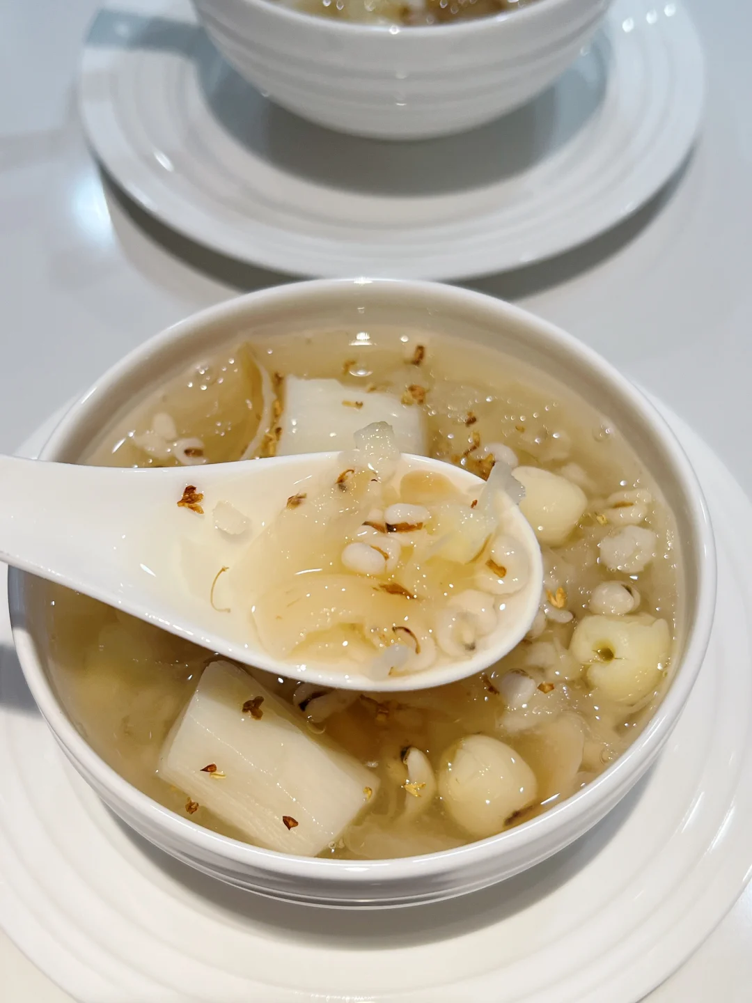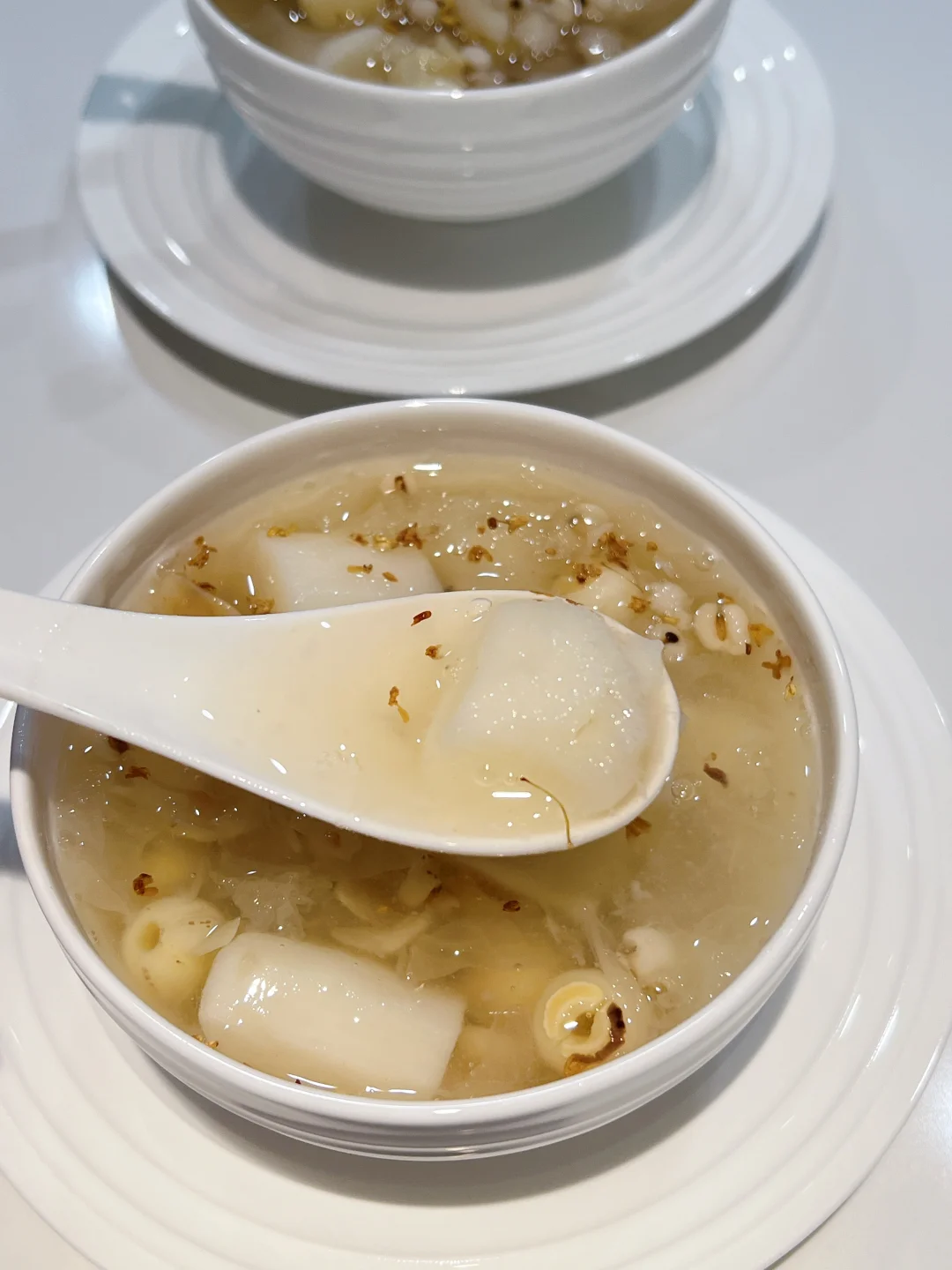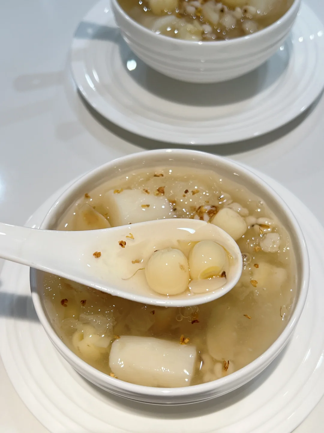 银耳五白羹去湿气真的太厉害了,排走体内多余废水,每周喝一次,美白又祛湿!夏天经常吹空调,冷饮吃多了湿气重,喝它就对了~ 🧑🍳食材: 1️⃣银耳半朵 2️⃣莲子一把 3️⃣百合一把 4️⃣炒薏仁10g 5️⃣山药200g 🥣做法: 1️⃣新鲜银耳去芯,撕成小块,和其他所有食材一起放入锅中,加1.5升清水,大火烧开后,小火煮40分钟即可。 ❗️小贴士: 1️⃣莲子,百合,薏仁提前浸泡一小时。 2️⃣薏仁比较寒凉,可以先炒至淡黄色再用。