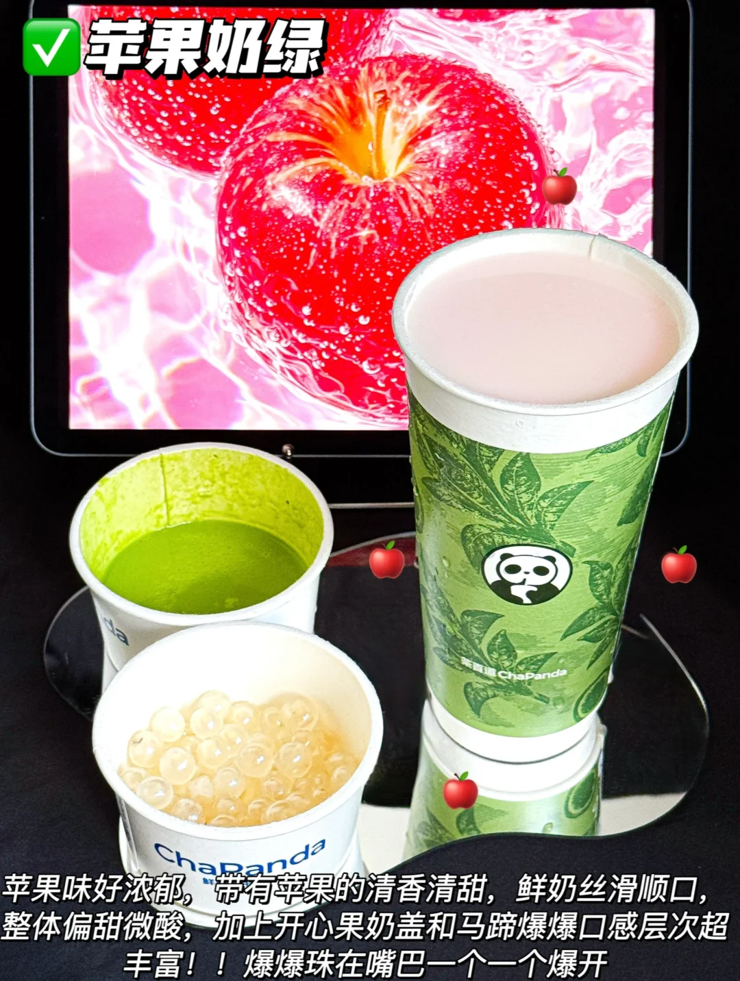 ✅🍎每日苹果奶绿+开心果奶盖+马蹄爆爆珠