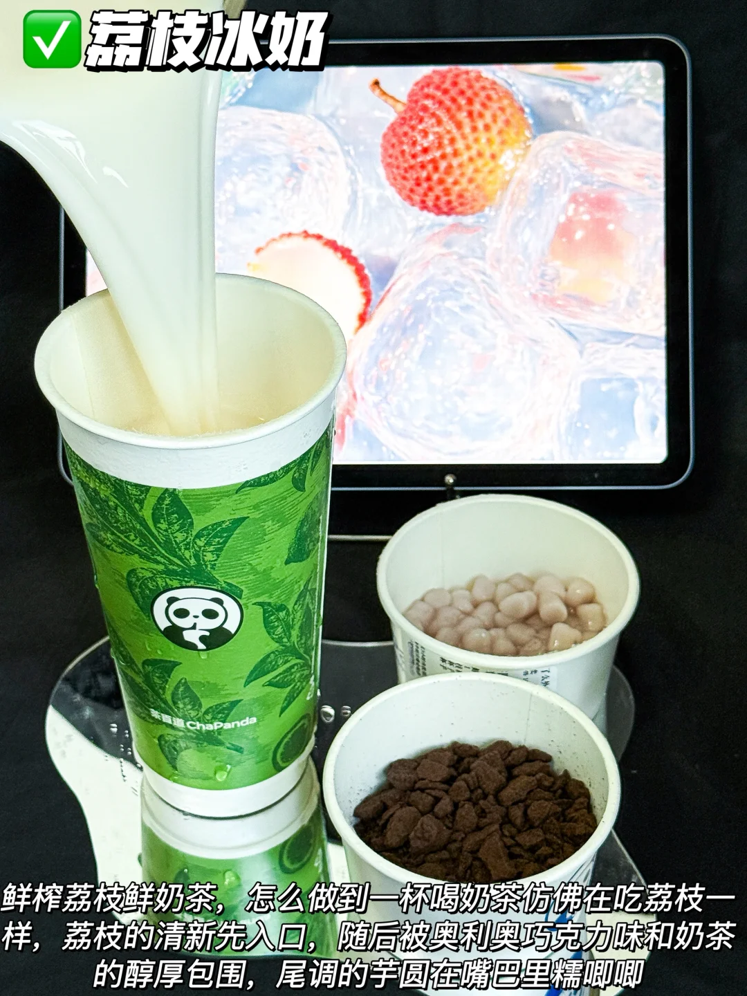 ✅荔枝冰奶+奥利奥+芋圆