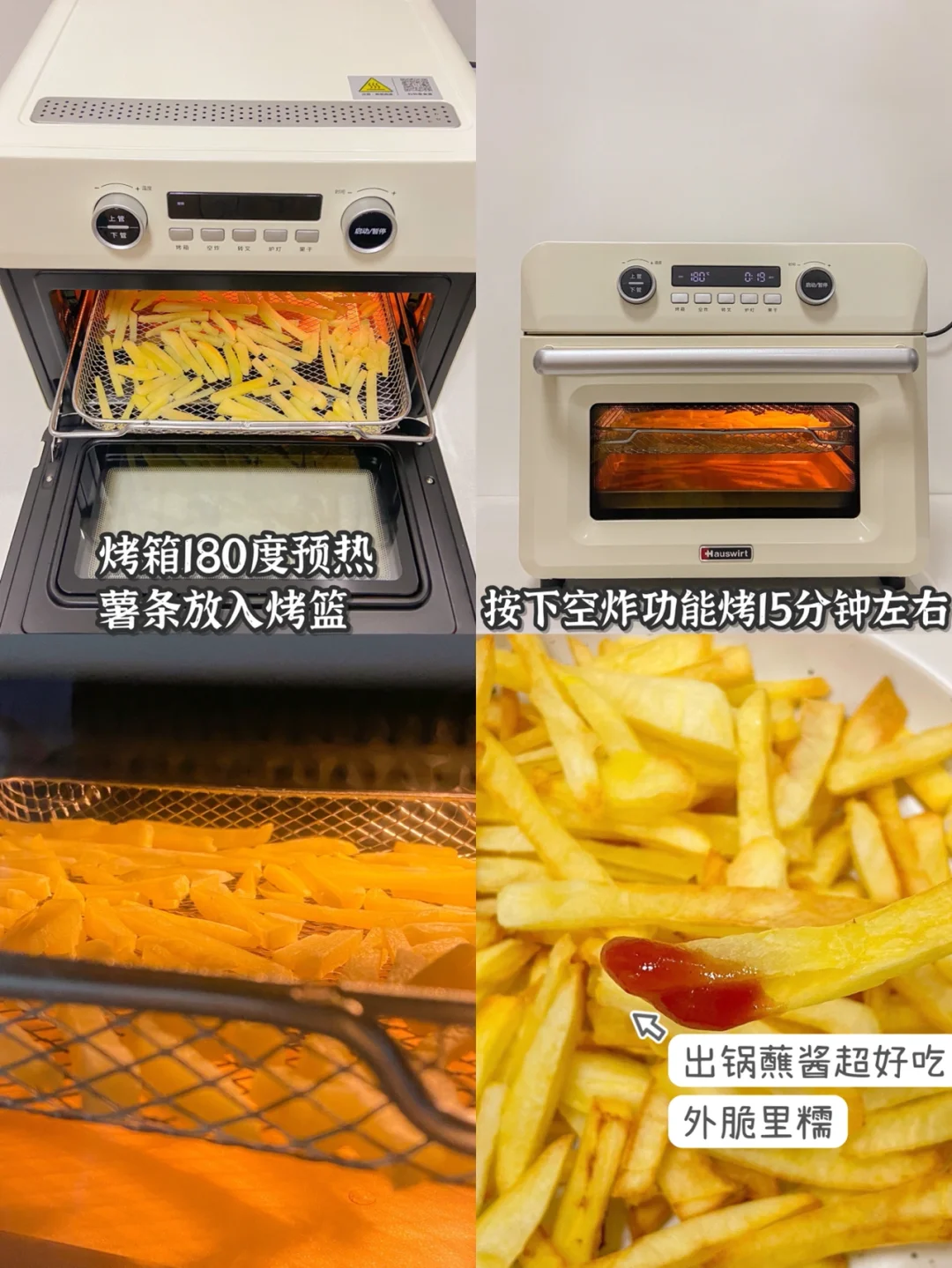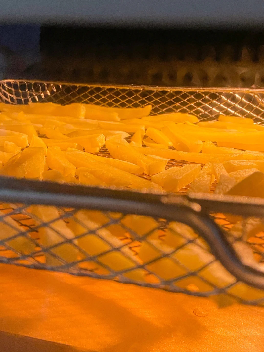 5️⃣烤箱180度预热 薯条放入烤篮180度开启空气炸功能烤15分钟左右就好啦