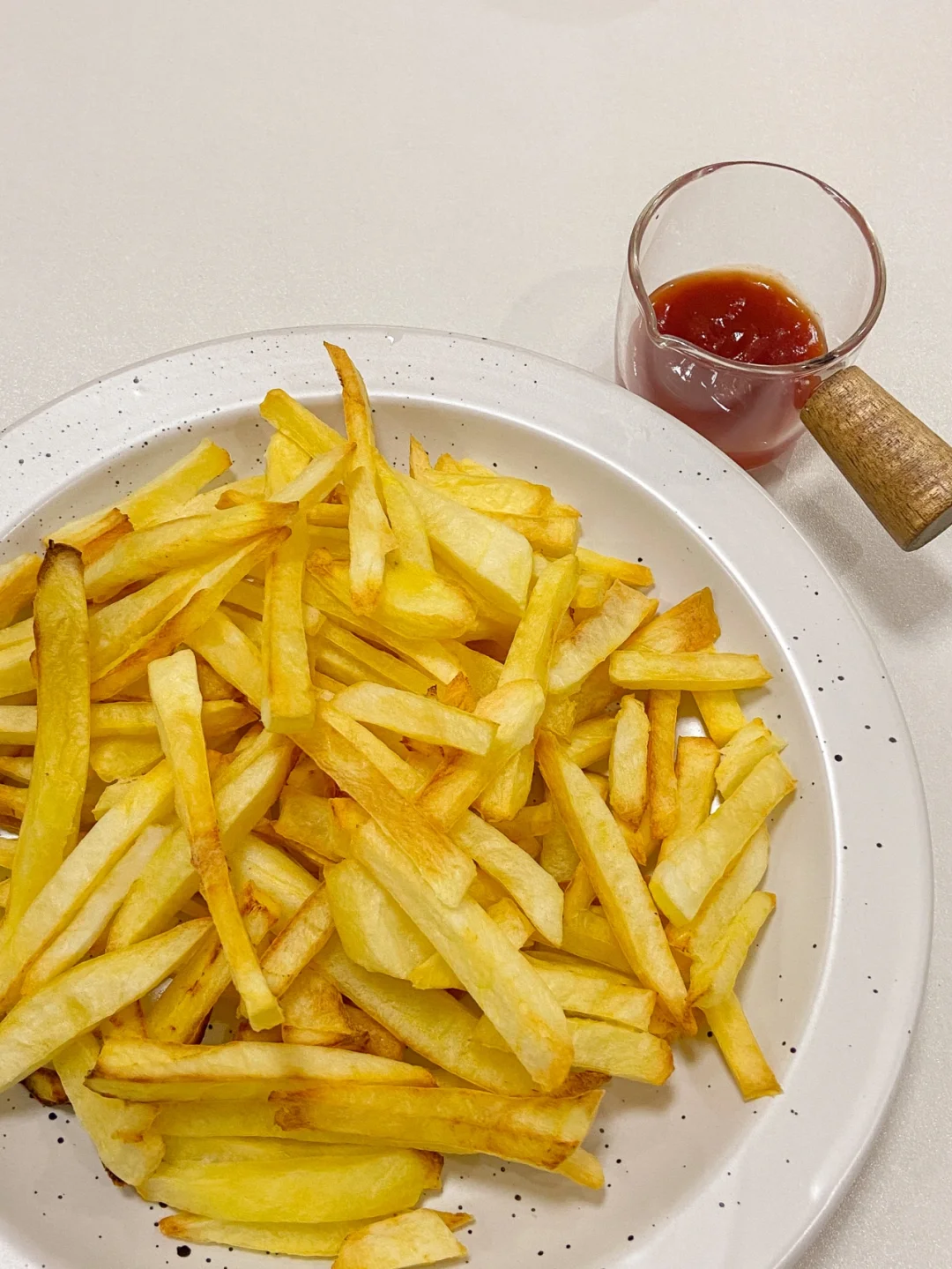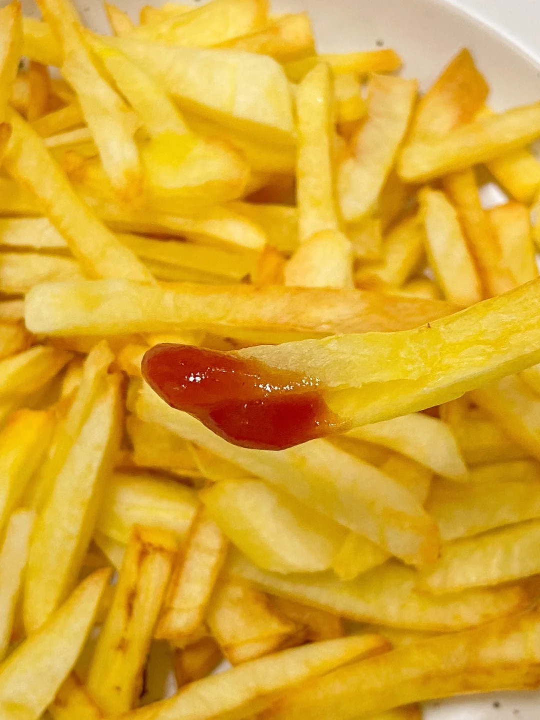 想吃咸一点的可以加入适量的盐翻拌炸好的薯条 也可以直接蘸番茄酱 趁热吃最好吃哦👍🏻自己做的炸薯条少油且健康 给孩子吃就毫无顾虑啦 真的简单又好吃 追剧必备呀 烤箱自带这个空气炸功能 家里没有空气炸锅的也不愁了一机多用棒棒哒😘
