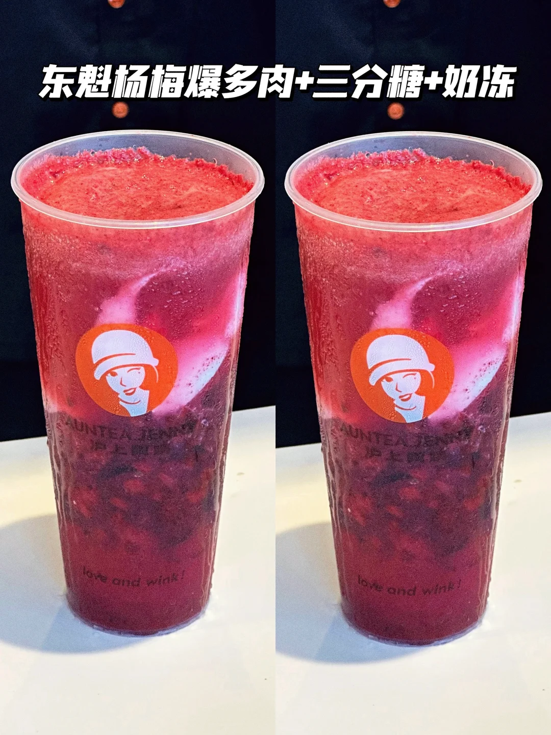 1️⃣东魁杨梅爆多肉+三分糖+奶冻