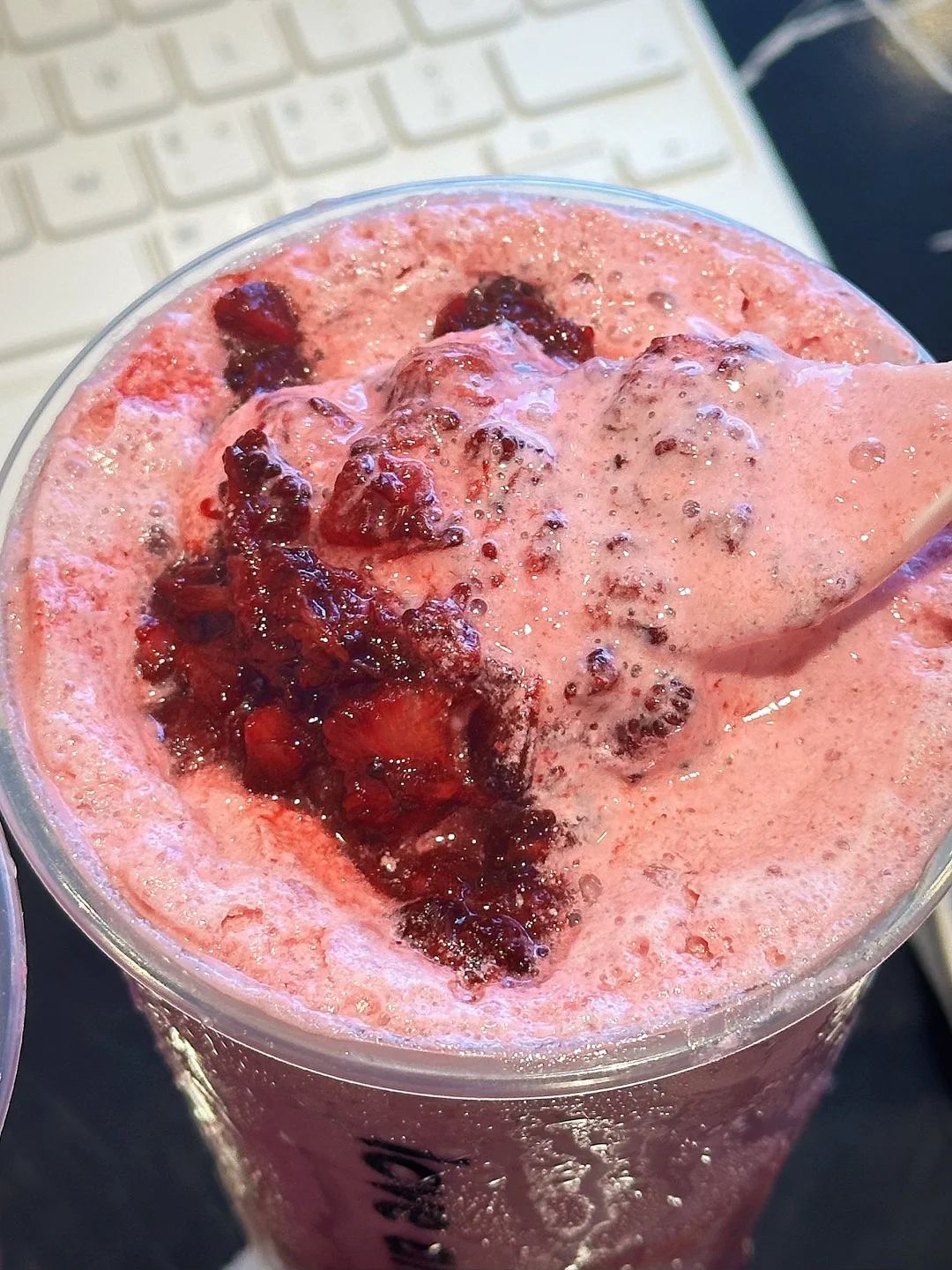 4️⃣东魁杨梅奶昔+三分糖+小多肉