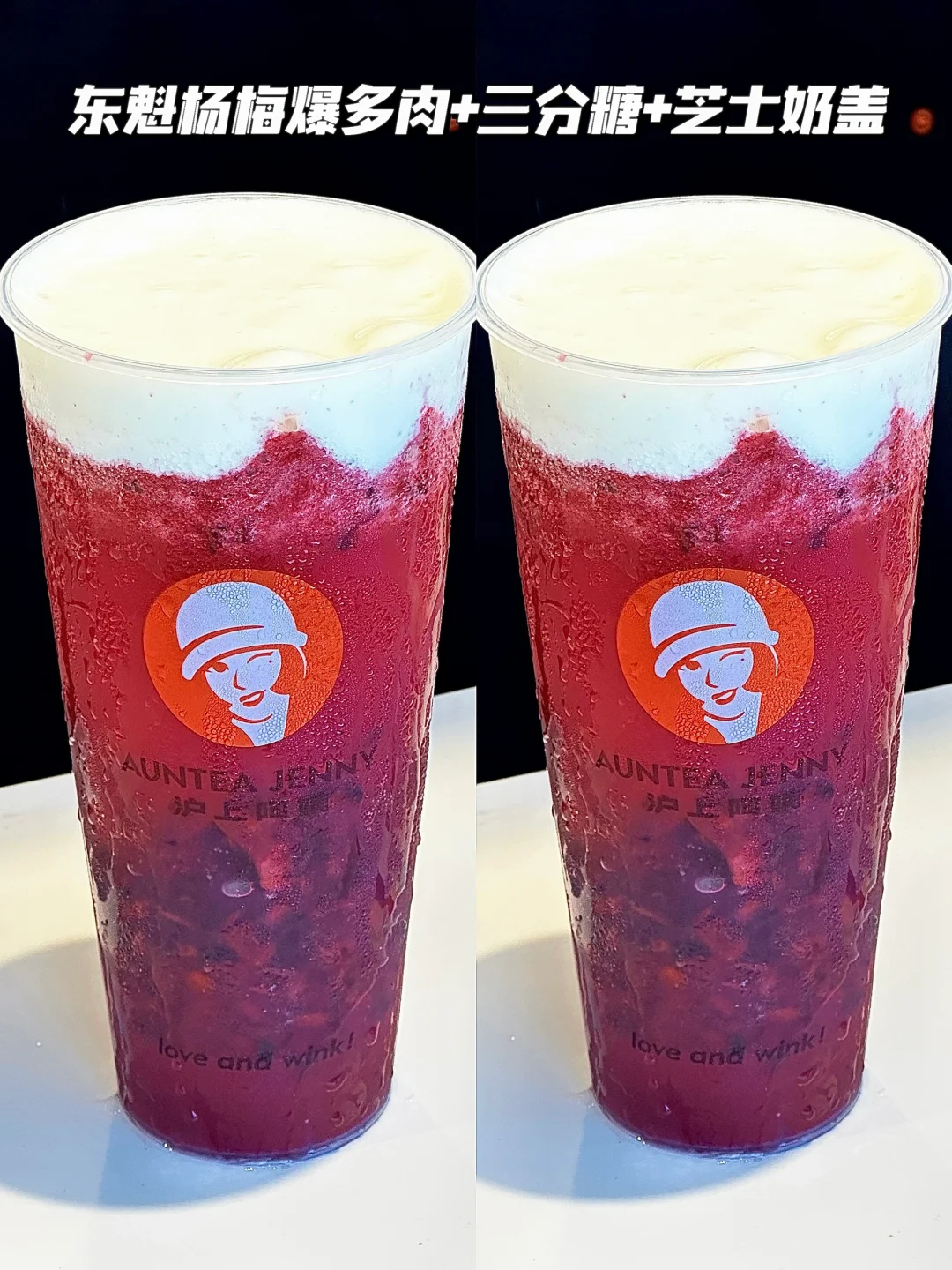 2️⃣东魁杨梅爆多肉+三分糖+芝士奶盖