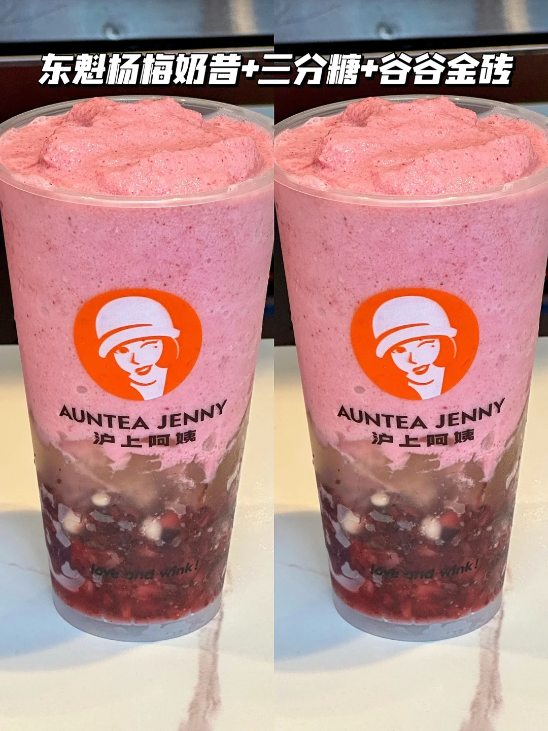 3️⃣东魁杨梅奶昔+三分糖+谷谷茶金砖