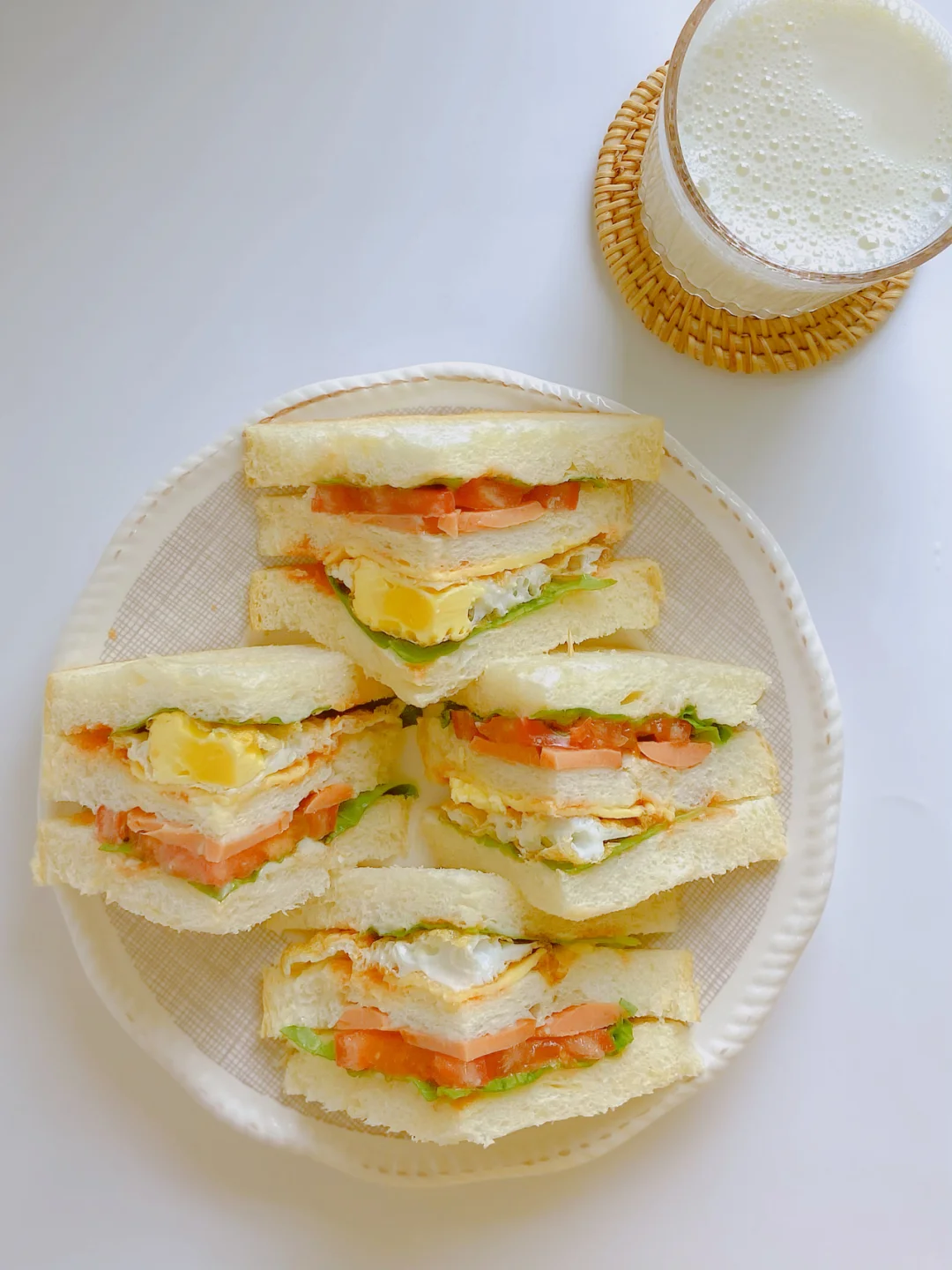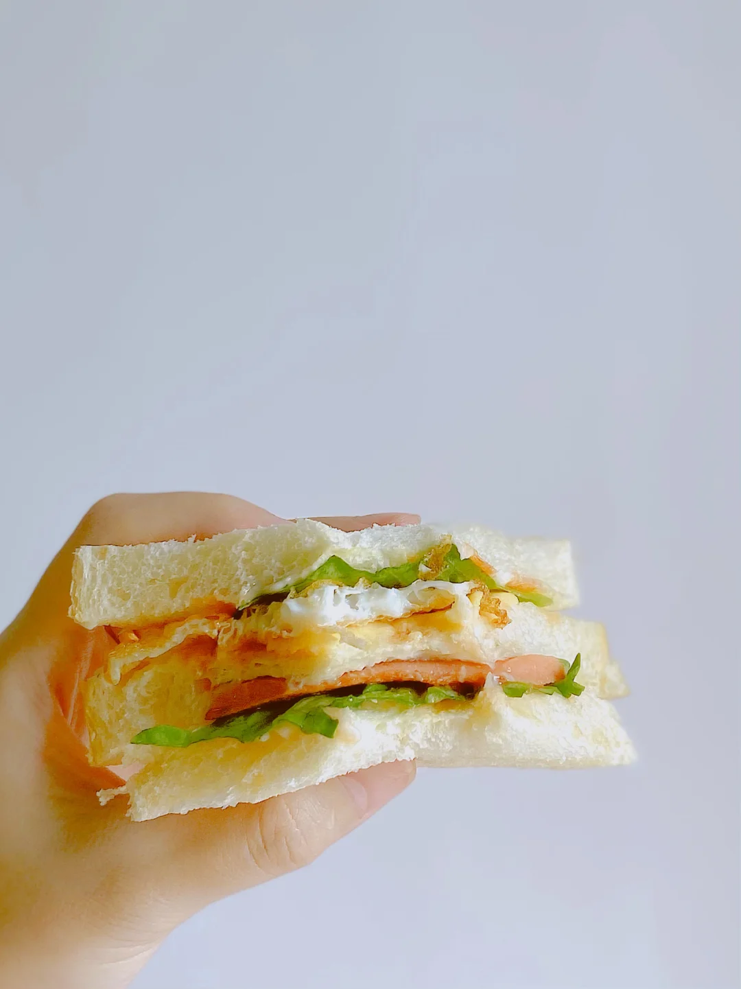 懒人的福音大概就是三明治吧 早上起来5分钟完成的三明治 好吃又快手 配上一杯牛奶 早餐就解决啦!