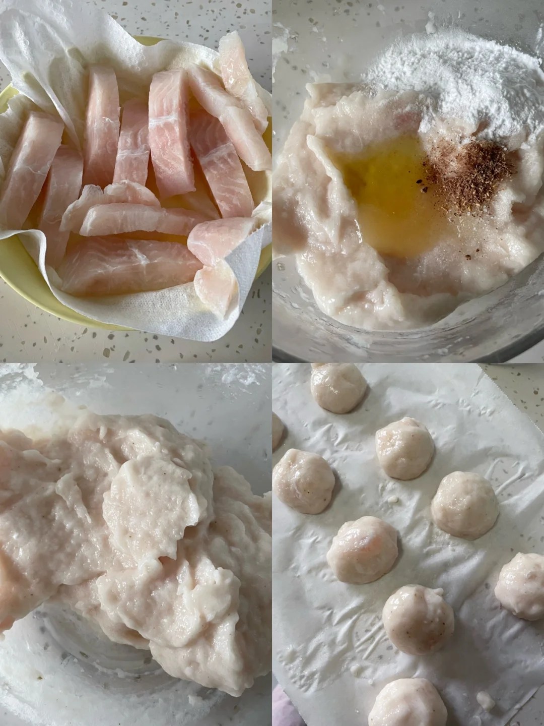 鱼丸:一个巴沙鱼柳(300g的样子)、15g淀粉(我用的土豆淀粉)、盐、糖、蒜水、花椒粉等调料