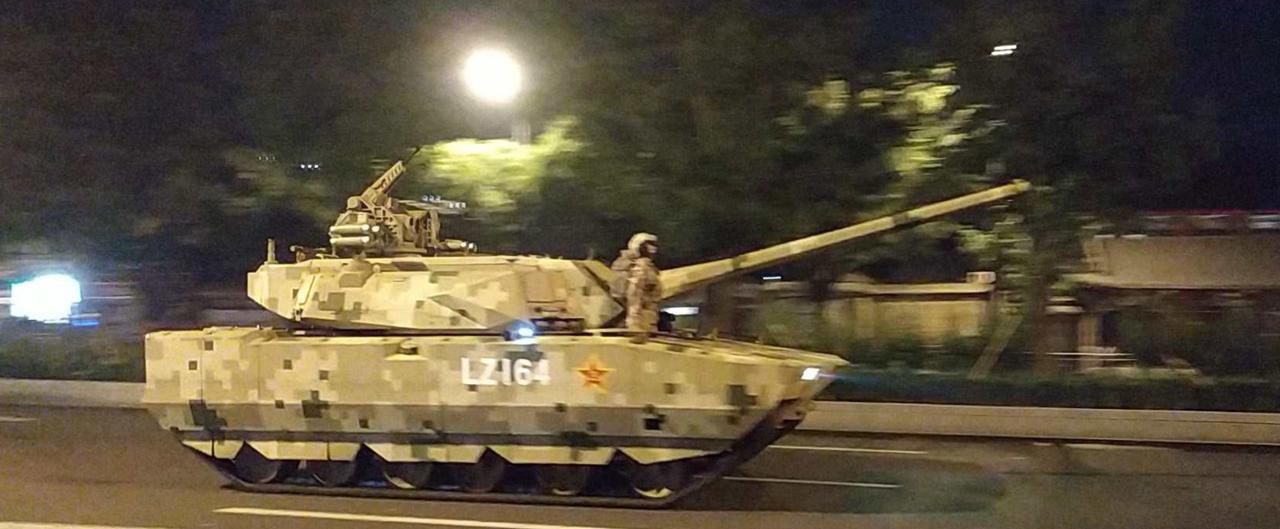 9.3大阅兵的第一方阵,由三种地面突击装备构成,冲在最前面的是99B主战坦克,它