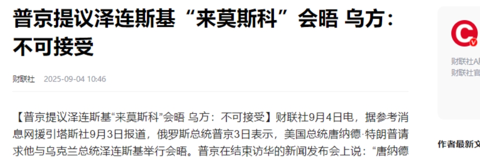 俄罗斯宣布了!9月3日,普京在结束对中国访问后的记者会上表示,如果泽连斯基准备好会晤,他将邀请泽连斯基访问莫斯科。 眼下顿涅茨克地区的红军城成了绞肉机,俄军说已经对这座交通枢纽形成半包围,可乌军也不含糊,说8月里就在这儿打退了俄军67次进攻,还把城里的俄军小分队给清出去了。 这种拉锯战已经持续快三年,两边都打累了,乌克兰国内想"血战到底"的民众从73%降到了38%,俄罗斯那边也被战争引发的通胀搞得头疼。 但俄军显然觉得自己占着上风,普京都明说乌军部队满编率不到五成,后备力量快见底了,这时候喊谈判,说白了就是想把战场上占的便宜,变成谈判桌上的实利。 可谈判地点选在莫斯科,这里面的门道就太深了。就像俩闹矛盾的街坊,一方非得让另一方去自己家里理论,这主场优势谁看不出来? 乌克兰外长瑟比加当天就把这提议给否了,还拿出7个替代方案,奥地利、瑞士这些中立国不说,连沙特这样的海湾国家都愿意当中间人。 为啥提沙特?人家去年就主办过乌克兰问题会议,还帮着俄乌换过战俘,确实有调解的底气。 泽连斯基在法国开会时也说得明白:不是不谈,但绝不去莫斯科。在人家地盘上,安全没保障不说,谈判时腰杆都挺不直,换谁都得犯嘀咕。 其实双方心里都跟明镜似的,就算坐下来谈,核心问题也谈不拢。 俄军现在占着卢甘斯克快全境、顿涅茨克东部一大半,扎波罗热和赫尔松也控制着七成地盘,肯定想把这些既成事实敲定下来。 可乌克兰这边呢,泽连斯基反复说要收回所有土地,最近在波克罗夫斯克方向还硬扛着俄军十万兵力的进攻,哪能轻易认输? 这种南辕北辙的立场,就算真在莫斯科见了面,多半也只能是演戏给外人看。 更有意思的是,这场戏不光是演给对方看的,更是演给西方阵营看的。 最近美欧那边心思乱得很,特朗普8月在开会时居然中途打断讨论,直接起身给普京打电话,还说和谈不用先停火,这跟默茨等欧洲领导人的想法完全拧着劲儿。 马克龙拉着26国说停火后给乌克兰派保障部队,可德国说没协议绝不派兵,波兰更直接,说战后也不去。 普京这时候喊泽连斯基去莫斯科,就是想看看西方会不会内讧:有没有国家会嫌乌克兰太强硬?会不会有人私下抱怨泽连斯基不懂变通?这心理战玩得可真够溜的。 说到底,普京这声邀请更像是次政治试探,既想展示自己掌握主动权,又想搅搅西方阵营的浑水。 真要实现和平,光靠嘴皮子可不行。得双方都有诚意,谈判条件对等,国际社会也得拧成一股绳。 可现在呢?俄军还在往前推,乌军还在硬顶,西方的承诺都带着"停火后"的前提。这么看来,这和平的路啊,恐怕还长得很呢。