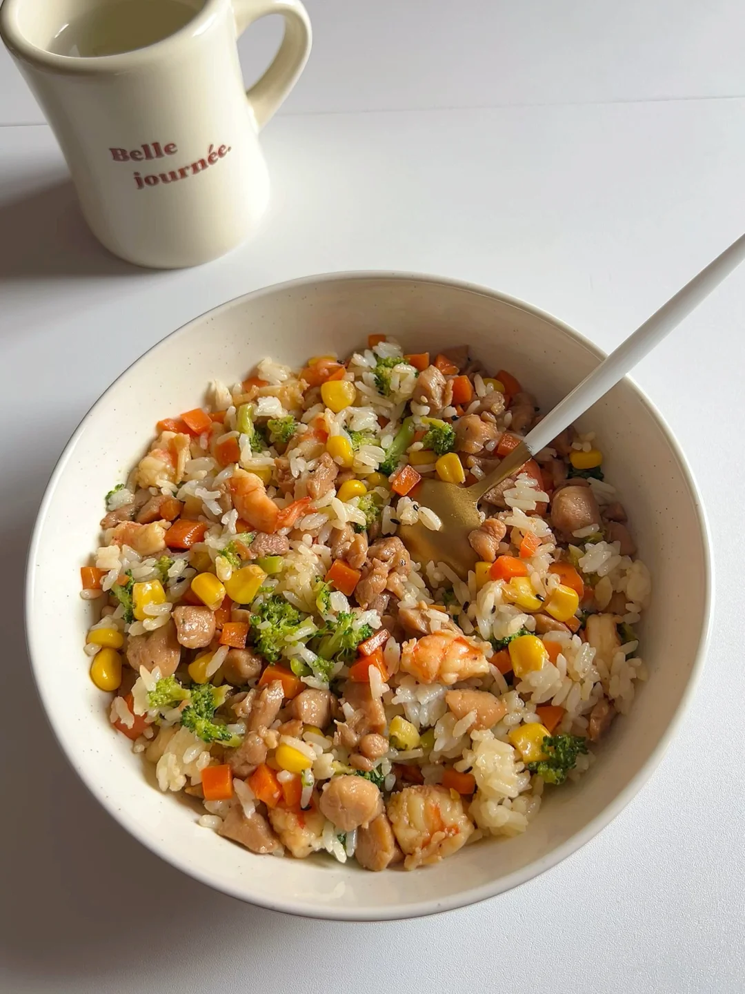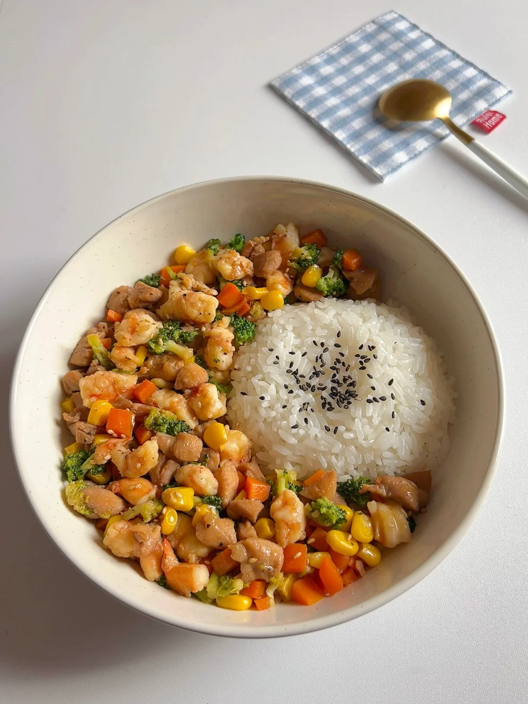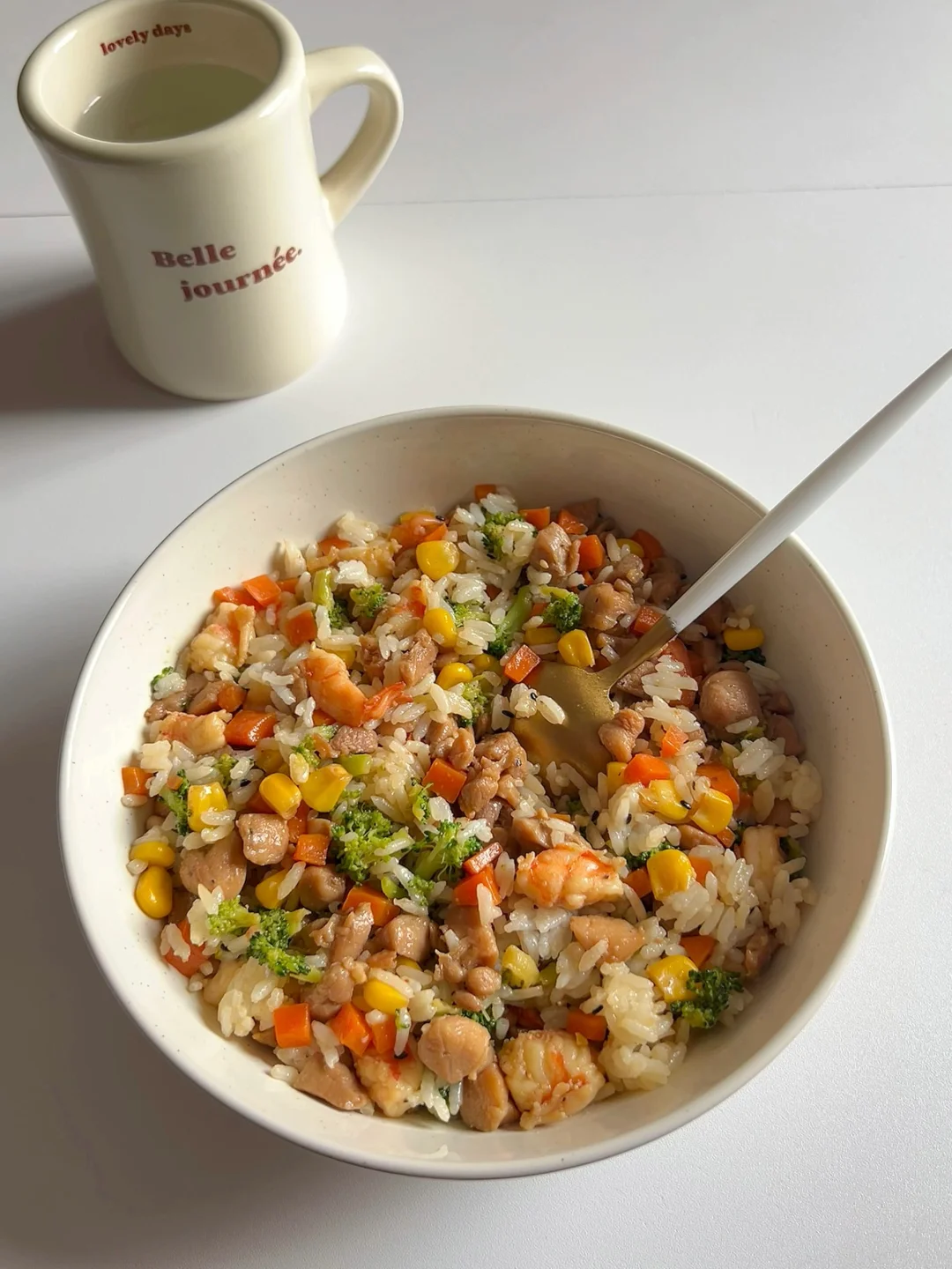 今天吃的是鸡肉➕虾仁➕时蔬拌饭