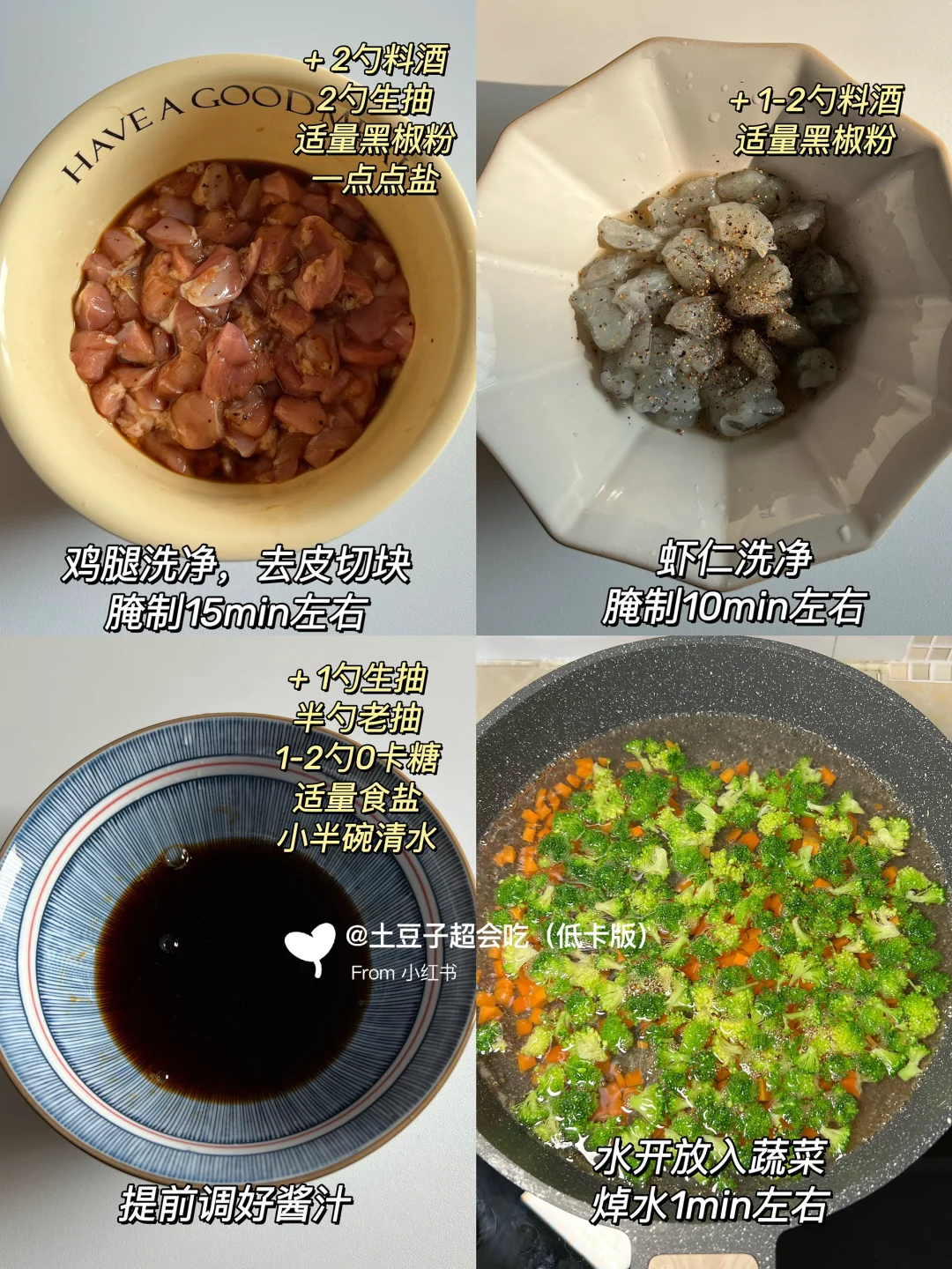 🥦 食材:鸡腿、虾仁、西兰花/胡萝卜/玉米粒