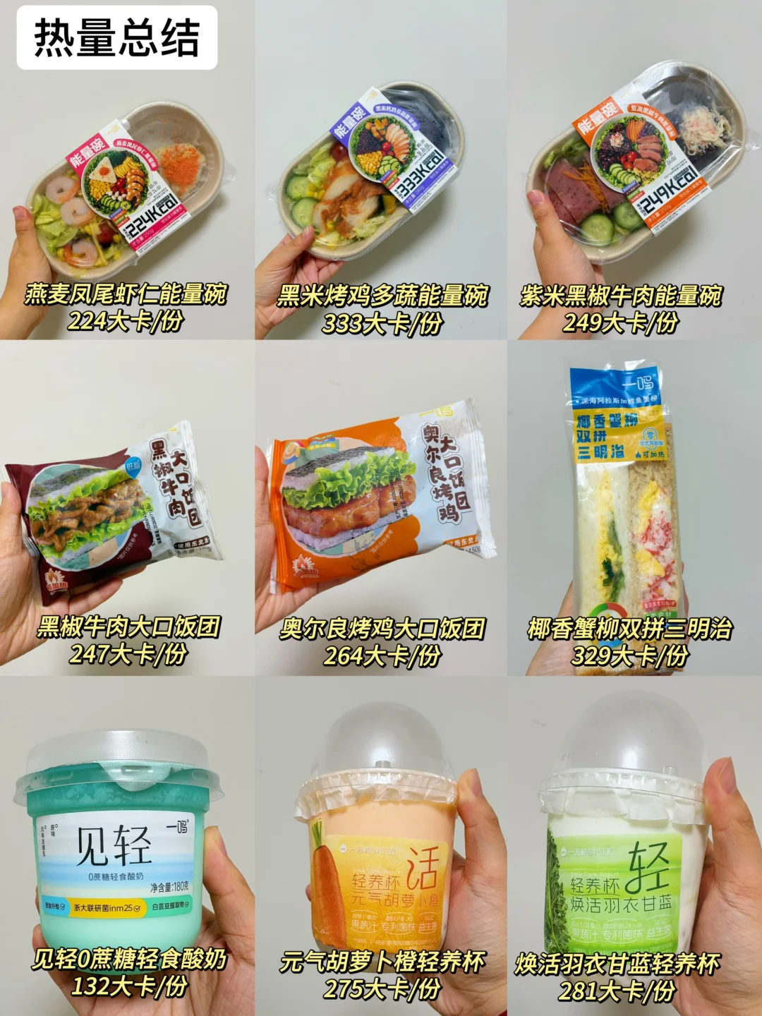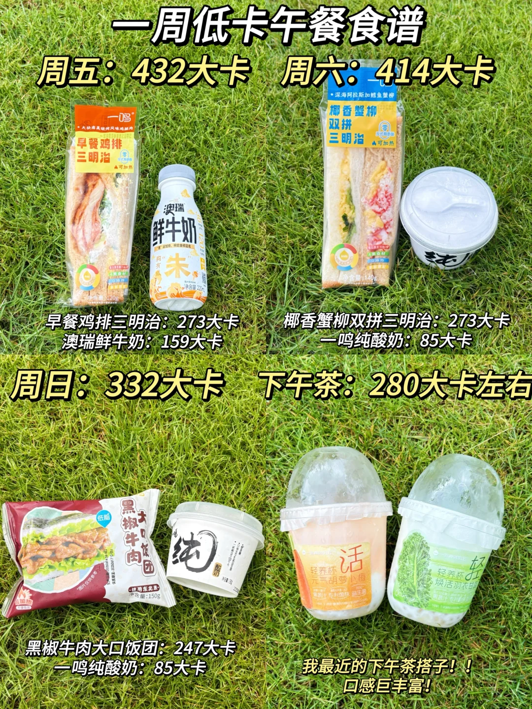 Hello 大家好我是莹莹 一个喜欢研究外食不长胖的女孩👧 作为江浙的小孩我看有谁还不知道一鸣真鲜奶吧! 今天来到店里 看到新上线了能量碗和轻养杯系列 都是主打轻养低卡的又仔细看了看各种餐品配料表,发现鸣子家适合管理期吃的还不少 当机立断给姐妹们搜罗了一波 整理出了一鸣的一周低卡午餐食谱(含新品测评 一起来看看吧~ 【新品热量排列】 (能量碗系列) 1️⃣燕麦凤尾虾仁能量碗224大卡/份 2️⃣紫米黑椒牛肉能量碗249大卡/份 (轻养杯系列) 1️⃣元气胡萝卜橙轻养杯275大卡/杯 2️⃣焕活羽衣甘蓝轻养杯281大卡/杯 【鸣子的一周500大卡午餐,应该怎么吃?】 周一:燕麦凤尾虾仁碗+元气胡萝卜橙轻养杯=499大卡 周二:紫米黑椒牛肉碗+焕活羽衣甘蓝轻养杯=530大卡 周三:黑米烤鸡能量碗+见轻0蔗糖酸奶=465大卡 周四:奥尔良大口烤鸡饭团+澳瑞鲜牛奶=423大卡 周五:早餐鸡排三明治+澳瑞鲜牛奶=432大卡 周六:椰香蟹柳双拼三明治+一鸣纯酸奶=414大卡 周日:黑椒牛肉饭团+一鸣纯酸奶=332大卡 ⭕减脂期小tips: 1️⃣午餐不知道怎么选的姐妹可以盲选能量碗,每份里面都含有优质蛋白加上杂粮饭团和还有生菜、小番茄等膳食纤维,而且每天午餐时段买能量碗还会送一个见轻0蔗糖酸奶,加起来热量都在500大卡左右,重点是很解馋,又很饱腹,到了下午也不会馋其他高热量零食啦~ 2️⃣饭团优先选择牛肉、鸡肉,三明治类可以选择蔬菜鸡排类,再搭配一个鲜奶或者纯酸奶,也是营养美味的又均衡的一餐啦! 3️⃣其他就是一定要早睡早起和多喝水!养成好的生活习惯真的对减脂很加分! ✅测评下来一鸣能量碗真的很适合我们减脂打工人来吃,不知道吃什么的时候盲选,一点都不会踩雷,食材也是天然的食材,干净又卫生!在口感方面真的不用多说,已经狠狠拿捏住我这个中国胃了!(哈哈哈 不过我要单独为燕麦凤尾虾举大旗 !!没试过的都去试是尊滴很好吃😋) 还有姐妹们不要一到减脂期就不敢吃这不敢吃那!我们要学会吃好吃对每一餐,养成好的饮食习惯才是长久的减肥之道呀~