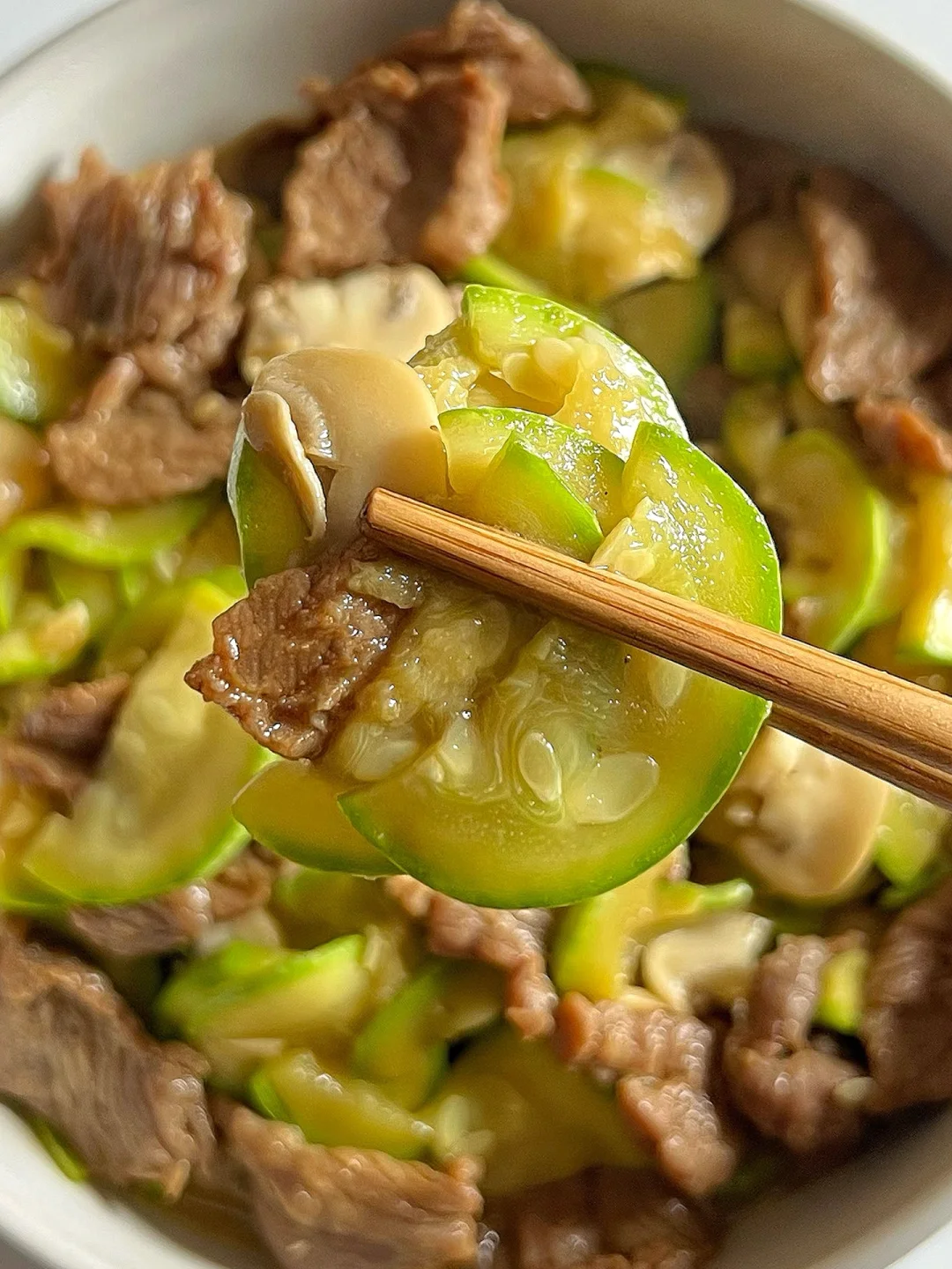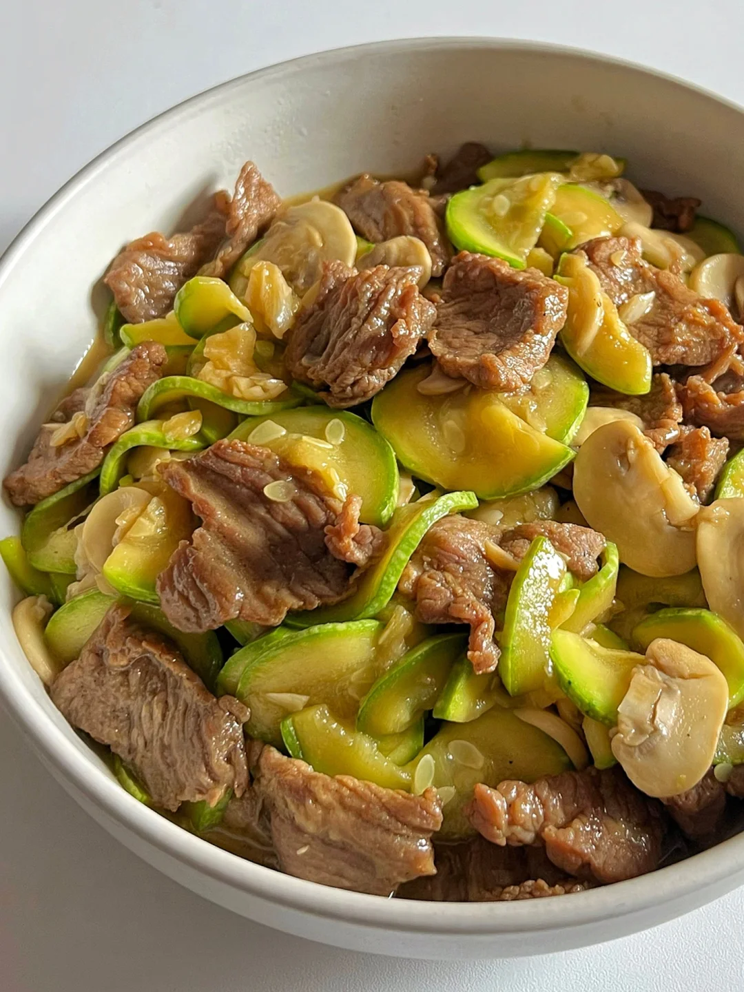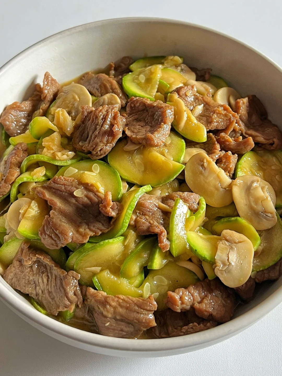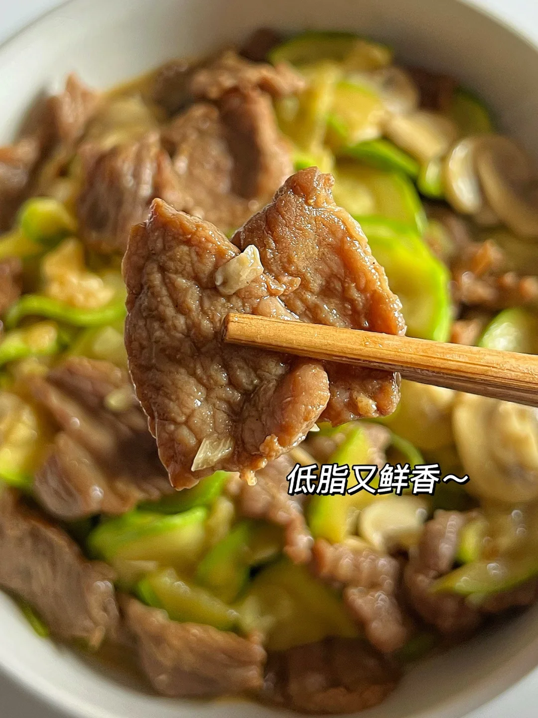 减脂期 不知道吃什么的姐妹[萌萌哒R] 来试试这个既清爽又下饭的西葫芦口蘑炒牛肉❗️低脂鲜香~~[害羞R] 一口牛肉➕一口蔬菜,再来一口米饭~超级好吃的呀!