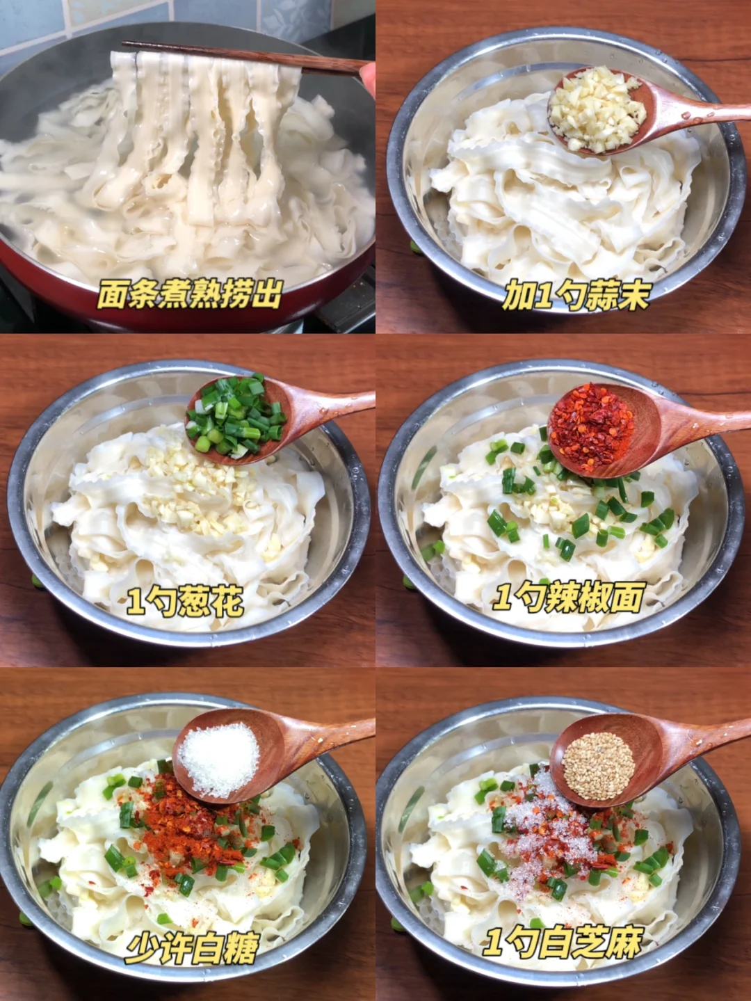 ✅✅食材:刀削面,青菜几根,蒜末,葱花,辣椒面,白芝麻