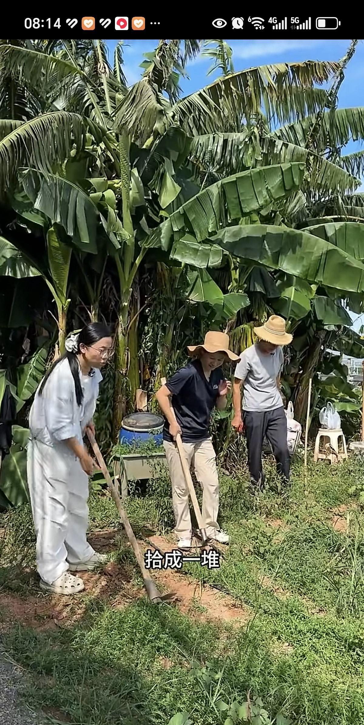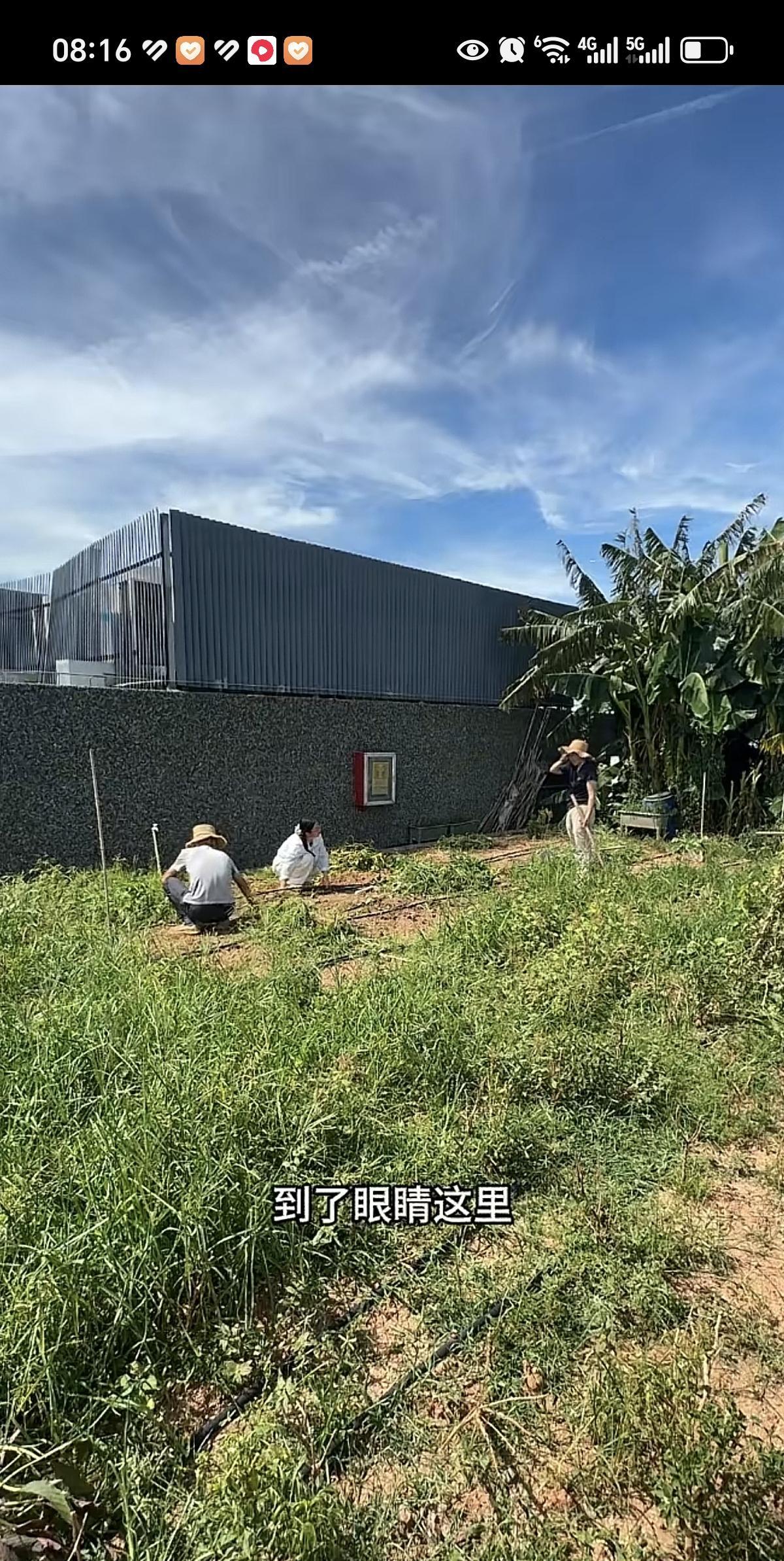 红姐跟着来小娜和老爹菜地干活,评论区又炸锅了[捂脸]。 老爹一回深圳,就赶紧来菜地看看,没有人打理的菜地,长满了杂草。 今天他们仨干的活就是除草了。 红姐话比较密,小娜和老爹闷头干,话少[呲牙]。 红姐一会儿问有没有手套,一会儿说怎么那么多汗,深呼吸,干这个活,在太阳下是比较累容易流汗的。 然后红姐提出应该早上六点来菜地干活,老爹说那明天我六点喊你起来,能不能起来? 红姐又说可以,但是要晚上八点她就能够回房睡觉[大笑]。 因为这句,评论区又炸锅了,有说红姐会养生,在深圳能晚上八点就睡觉的人太少了,有说红姐一天要睡十个小时,睡眠太好了等[捂脸]。 红姐果然是能吸引流量的[大笑]。