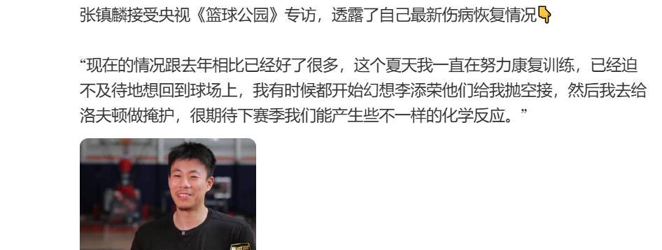 薛定谔的伤病张镇麟转会后身体已经好转,曾表示必须手术治疗。在接受央视《篮球公园