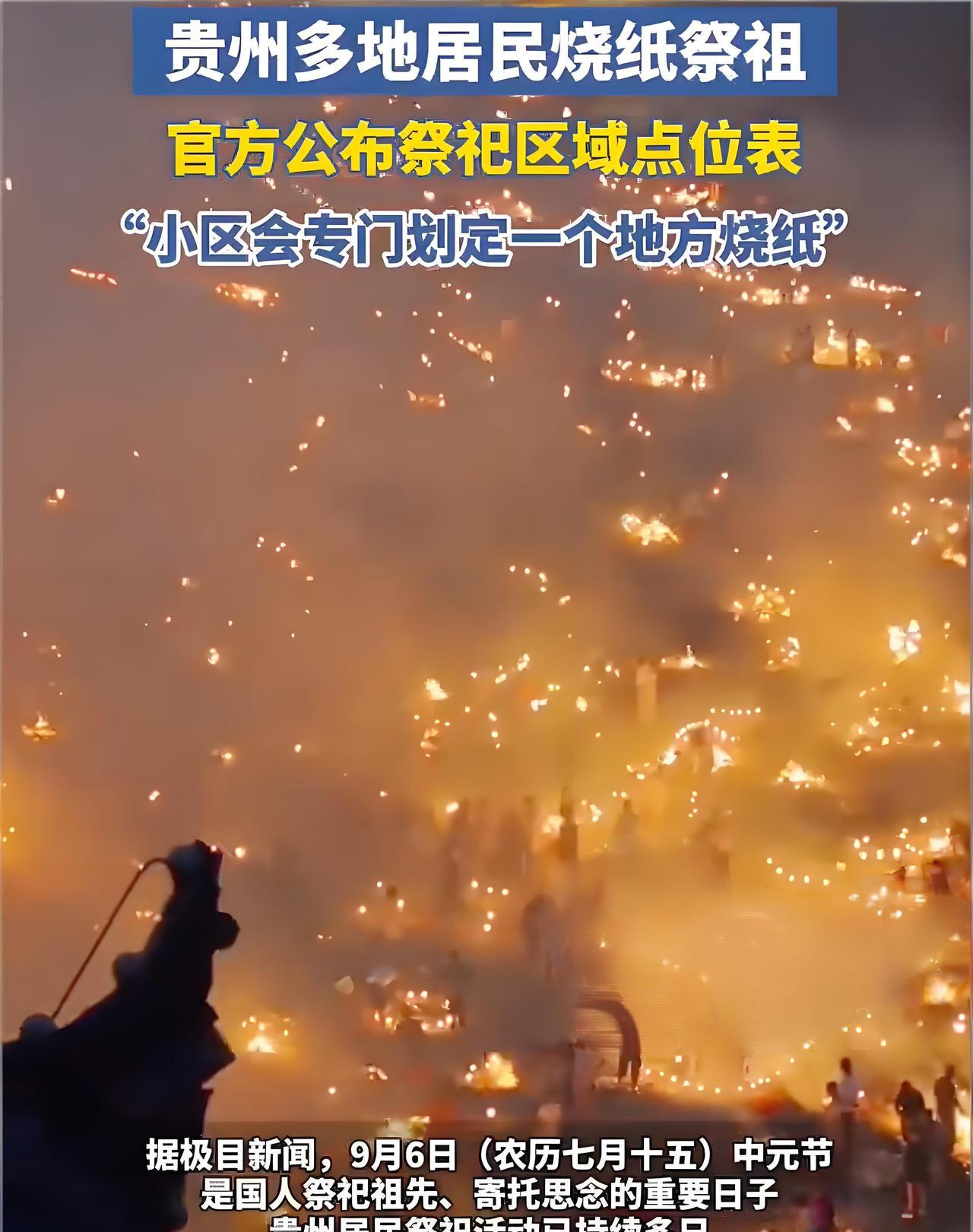 强烈建议向贵州学习中元节集中烧纸祭祖,这种做法太温暖人心了。中元节来了,每年这个时候都非常纠结,因为没有地方烧纸祭祖啊,很多时候要么偷偷摸摸打游击烧完即走,要么就只有无能为力地放弃,但心里面就像有一根刺一样觉得对不起逝去的先人们。祭祀文化是中国传统文化的重要组成部分,他不是封建,而是整个文化传承的纽带,也是中华民族凝聚力的重要组成部分。中元节烧纸祭祖应该是疏导而非围堵,所以像贵州那样划定专用区域集中烧纸祭祀就非常给力,既有安全保障,又能满足人民群众的切实需求,简直是一举两得的事情。可能有人说烧纸会污染环境,我只能说这点儿污染和汽车、工业造成的污染相比就是洒洒水,而且一年就一次,能污染到哪里去?当然在烧纸的同时也要倡导适可而止,心意到了即可。不能像某些地方一样烧仿真别墅、仿真车子等等,那样不但浪费资源又污染环境。 #秋日生活打卡季# #贵州中元节#