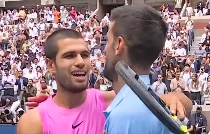 德约科维奇笑对输球, 毕竟是输给了岁月! 今天凌晨2025年美国网球公开赛, 男单半决赛: 塞尔维亚老将德约科维奇VS西班牙名将阿尔卡拉斯! 阿尔卡拉斯通过第二盘的抢七大战, 以3-0战胜德约科维奇, 晋级决赛! 第一盘: 阿尔卡拉斯毕竟年轻, 进入状态快, 开局打出局比3-1建立优势。 德约科维奇不甘示弱, 努力追赶, 但最终还是被阿尔卡拉斯以6-4赢下首盘。 第二盘: 德约科维奇及时调整状态, 开局打出局比3-0领先。 阿尔卡拉斯很快追平局比, 两人各自保发, 战至局比6-6平, 然后进入抢七大战。 在抢七大战中, 阿尔卡拉斯以7-4赢下第二盘。 第三盘: 估计德约科维奇的体力跟不上了, 也有可能阿尔卡拉斯打的太猛了 也有可能抢七没有拿下心气没有了。 阿尔卡拉斯打出局比4-1, 德约科维奇保发追了一局, 就被阿尔卡拉斯以6-2轻松带走第三盘。 德约科维奇虽然以0-3输了, 无缘决赛, 但是已经很好了, 毕竟德约科维奇已经创造了很难逾越的奇迹! 阿尔卡拉斯将在决赛静候, 辛纳和阿利亚西姆之间的胜者。
