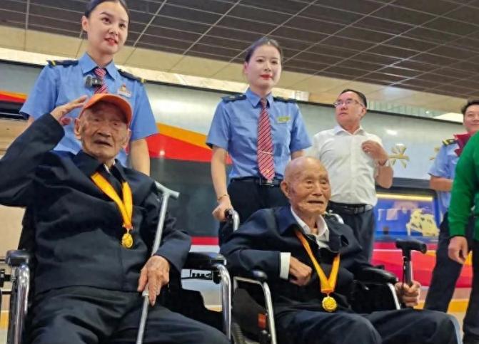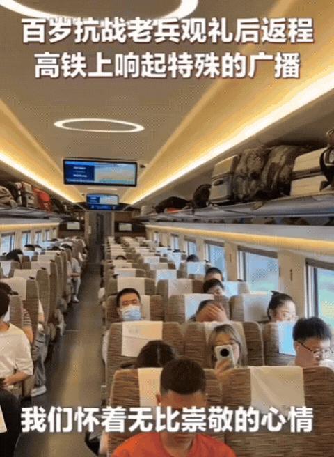 “上央视新闻了!”男子在高铁上睡着了,突然响起一则紧急广播,男子本来很烦,可当听到广播内容后,瞬间肃然起敬!列车员激动的说道:我们怀着无比崇敬的心情,向两位特殊的乘客致以最高的敬意。他们是昨天在天安门观礼93阅兵的抗战老兵宋其祥和刘吉祥。80多年前,他们从湖北参军抗日,用血肉之躯,筑起了钢铁长城,让我们为老战士鼓掌。 车厢内的一个男乘客刚刚被广播声音吵醒,揉着眼睛准备再次入睡,但当他听到列车员的声音时,身体不由自主地一僵,眼神瞬间变得凝重。 他知道,这趟列车被两位老人的到来给予了不一样的意义。 列车员的声音中带着激动与尊重:“车厢内的各位旅客,我们有两位特别的乘客,湖北抗战老兵宋其祥和刘吉祥!” 车厢里的人们纷纷转头,目光不自觉地投向了坐在角落里,满头银发的两位老者。 这两位老人并非寻常的乘客,他们是那段历史的见证者,是从80多年前走来的英雄,是曾在血与火中拼搏的抗战老兵。 从当时的19岁、20岁,到今天的百岁老人,他们所经历的岁月早已超越了个人的历史,成为了整个国家的记忆和象征。 列车员小心翼翼地从怀里取出一份特别的礼物,递给了宋其祥和刘吉祥两位老人。 礼物是两张定制的纪念车票,经过精心设计,每一处细节都透露着深深的敬意和感激。 车票上清晰地写着“车次G80”,这个编号不仅代表着当下这趟列车的编号,更是一个象征,标志着抗战胜利80周年的重大历史节点。 车票的起点和终点,分别用“胜利”和“复兴”两个字来表达,这份历史的接力,永不停息。 宋其祥和刘吉祥老人接过车票时,眼中泛起了微光,仿佛这些年过去,历史的厚重感才真正回到了他们身边。 他们轻轻地抚摸着那张纪念车票,仿佛又回到了年轻时的那个岁月,那段与战友们并肩作战、共同捍卫家园的岁月。 宋其祥和刘吉祥,这两位抗战老兵的故事,是中华民族在抗日战争时期艰苦奋斗与英雄气概的真实写照。 宋其祥老人,来自湖北宜都,年仅17岁时便投身革命,成为国民革命军第79军暂编第6师的一名战士。 1942年,当时正值抗战最为紧张的时刻,宋其祥义无反顾地参军,他和无数年轻人一样,在炮火连天的战场上,迎接了那一段最为艰难的岁月。 在1943年的常德会战中,宋其祥所在的部队奉命死守阵地,与日军展开了四天四夜的血战。他所在的阵地无数次被日军的进攻冲击,但是,他始终未曾后退一步。 在战斗中,宋其祥亲眼目睹了战友们一个接一个倒下,可他依然顽强地坚守阵地,与敌人展开白刃战,击退了日军多次的进攻。 “我们始终没有后退一步!” 回忆起这段峥嵘岁月,宋其祥眼神中透露出的坚定与自豪。 刘吉祥,101岁,湖北秭归人,1939年参军,成为一名抗日战士。 刘吉祥是一位笔力雄劲的文人,因写得一手好字,初期被安排担任部队文书。 可是,随着前线战事的吃紧,刘吉祥主动请缨奔赴战场,为了不让战斗的力量被后方供应的不足拖慢,他身负重任。 在1943年湖北宜昌遭日军猛攻的关键时刻,冒死为前线运送物资,突破敌人封锁,将军粮、弹药安全送达。 每次经过敌人的封锁线,都可能成为生死瞬间的考验,但刘吉祥无所畏惧,他的行动不仅保证了前线的供应,更为战斗的胜利提供了至关重要的保障。 尽管当时的武器远远不如日本的先进,但正是这些士兵以血肉之躯,与敌人进行殊死拼搏,展现出了中华儿女的伟大革命精神。 这两位老人的抗战经历,更代表了一个时代,代表了数以千万计的普通士兵在国难当头时的抛头颅、洒热血。 他们用血与火铸就了中国抗战的胜利,改变了历史的进程! 宋其祥老人缓缓站起身,尽管年事已高,身姿却依然挺拔如松。 他向着整个车厢的乘客,行了一个庄严无比的军礼。 而刘吉祥老人,则带着满是岁月刻痕的笑容,向周围的人们点头致意。 车厢里,之前还在玩手机、闲聊的乘客,此刻全都站了起来。 热烈而真诚的掌声响彻车厢,久久不息。 这些抗战老兵,是民族的英雄,是行走的丰碑。 当列车呼啸着奔向“复兴站”时,我们所有人都应该记得,这趟伟大的旅程,始于一个名为“胜利”的地方。