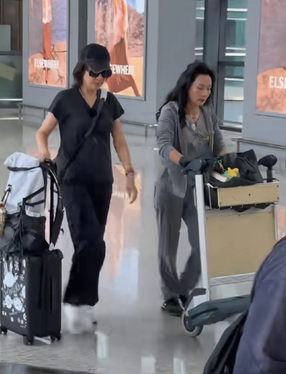 说实话,还是香港女明星会穿着打扮,上海虹桥机场偶遇刘嘉玲何赛飞合体出行拍综艺节目