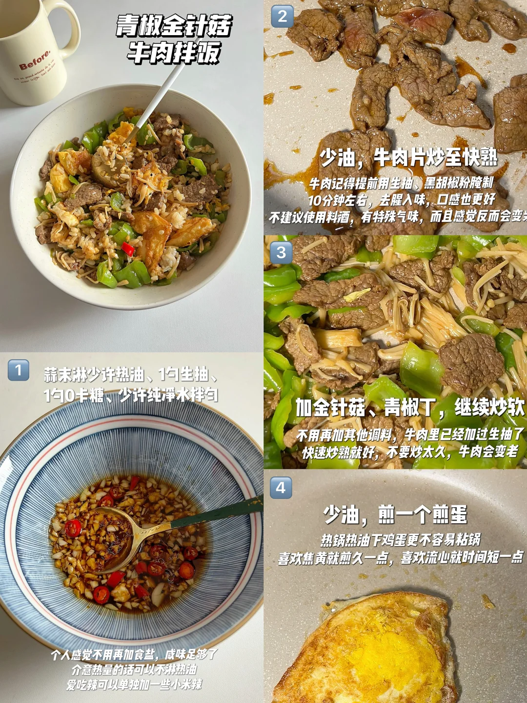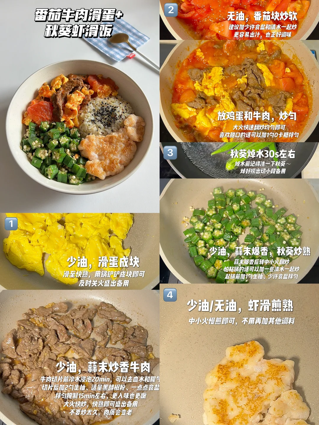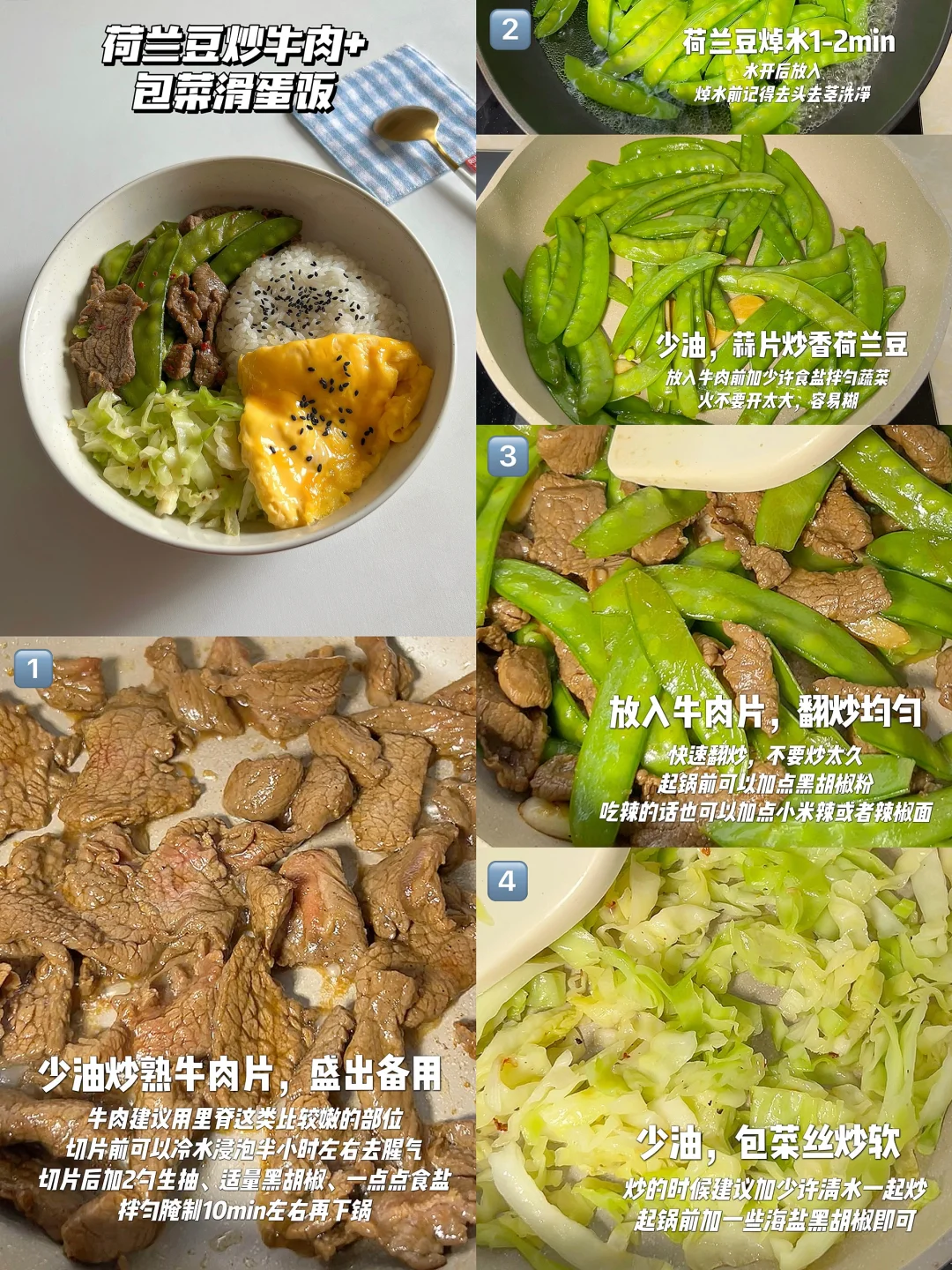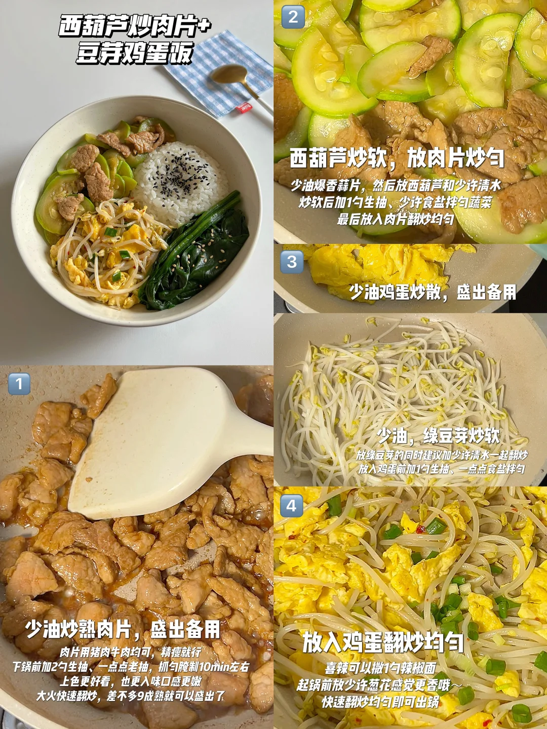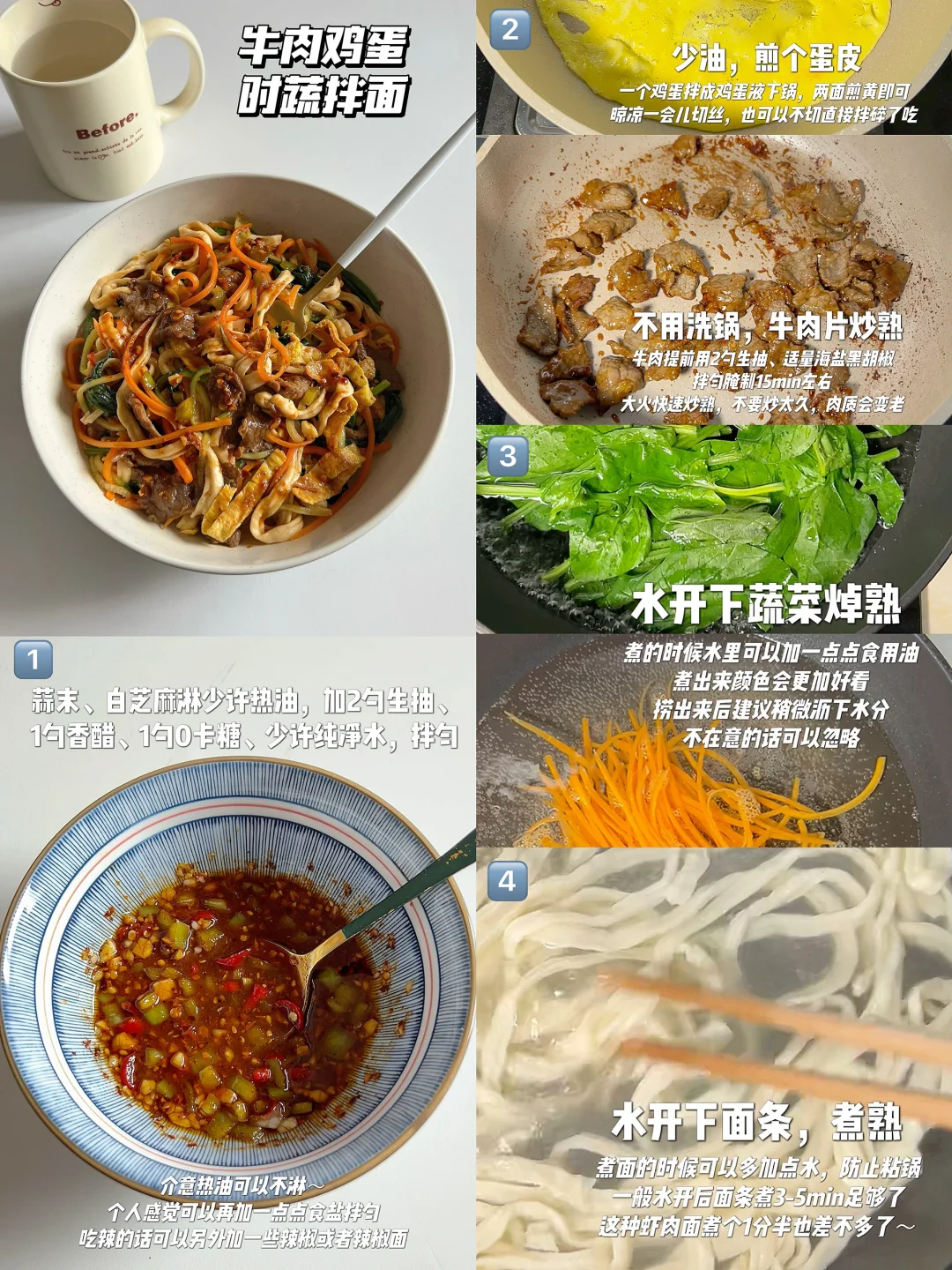 好喜欢自己做的饭饭!! 简单的食材➕简单的烹饪 就能做出超棒的健康餐[害羞R] 干干净净的,一周不重样~ 清爽又好吃,超适合夏天!! . 周1⃣️ 牛肉鸡蛋时蔬拌面🍜 周2⃣️ 番茄牛肉滑蛋➕秋葵虾滑饭🍅 周3⃣️ 西葫芦炒肉片➕豆芽鸡蛋饭🥙 周4⃣️ 葱烧鸡腿➕包菜煎蛋拌饭🍗 周5⃣️ 香煎牛排滑蛋饭🥩 周6⃣️ 荷兰豆炒牛肉➕包菜滑蛋饭🫛 周7⃣️ 青椒金针菇牛肉拌饭🫑 . 做法都在图片里哟~